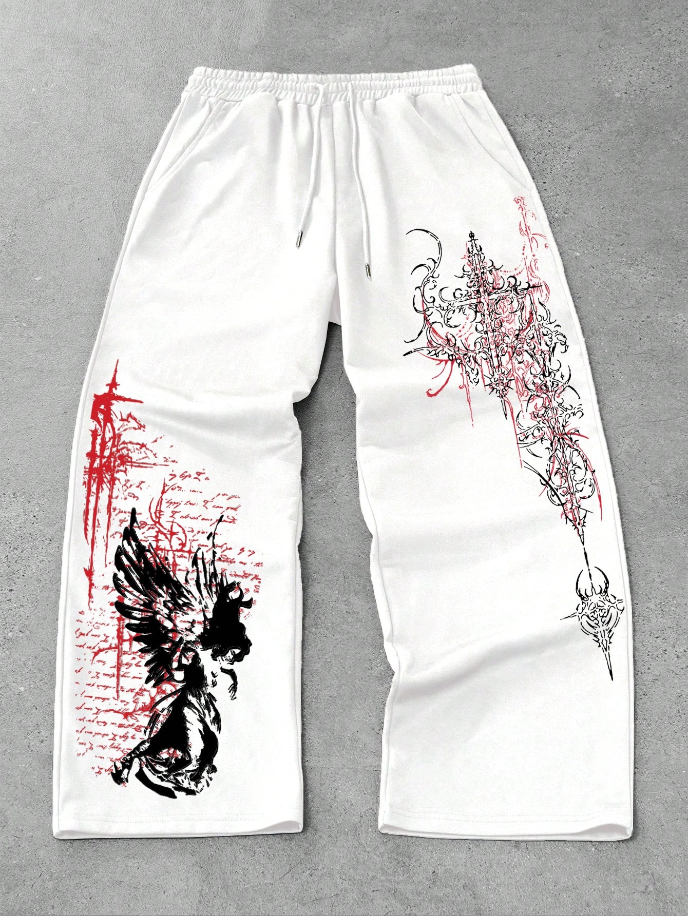 Goth Pantalones deportivos rectos y cómodos de corte holgado para hombre, color negro