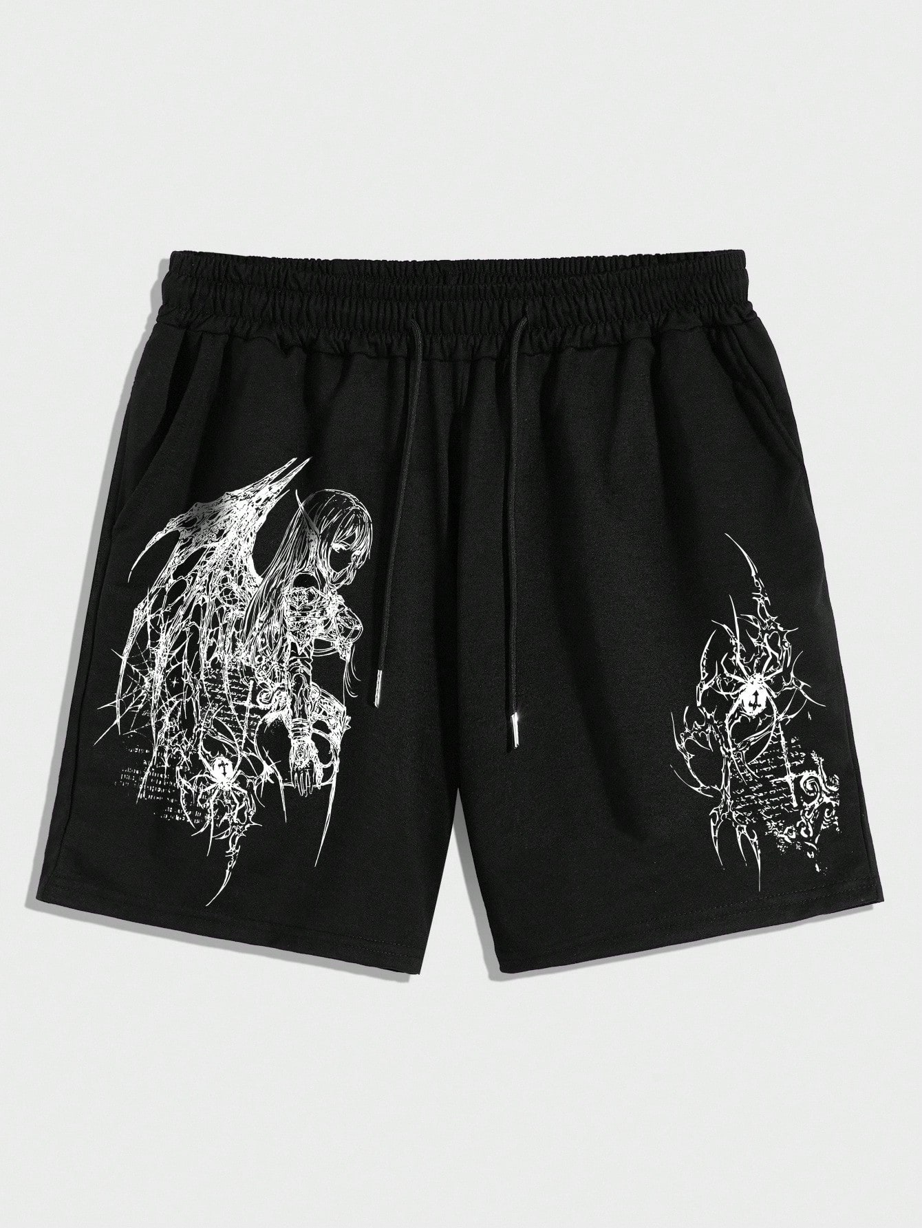 Goth Pantalones cortos deportivos casuales de pierna ancha y ajuste holgado con cordón y estampado para hombres