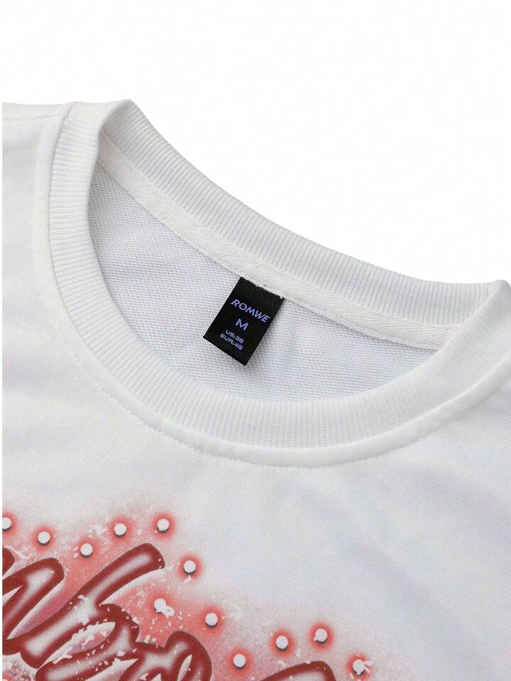 Goth Sudadera de cuello redondo de manga larga con estampado minimalista para hombre
