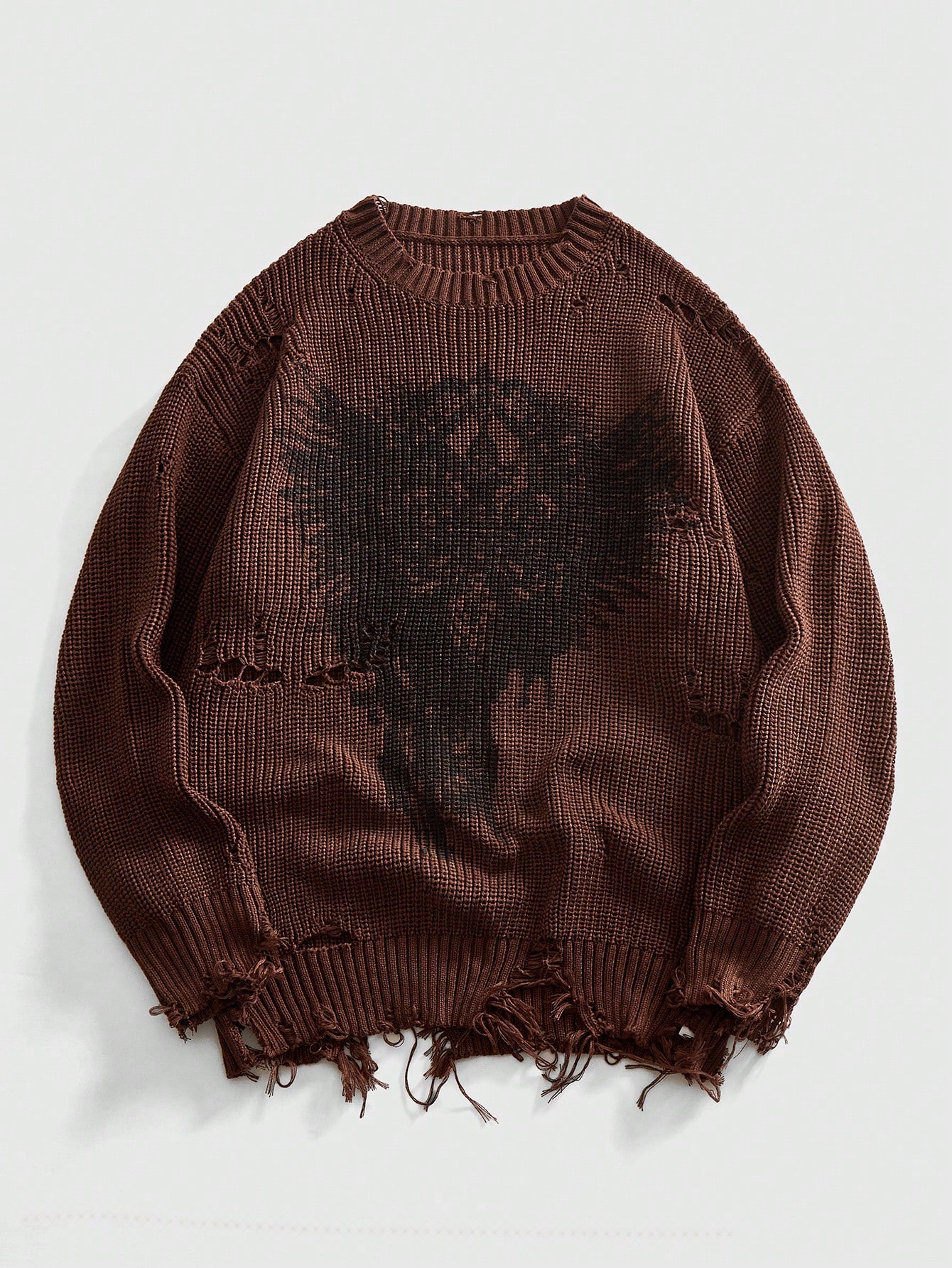 Goth Suéter de punto con estampado apocalíptico desgastado para hombre
