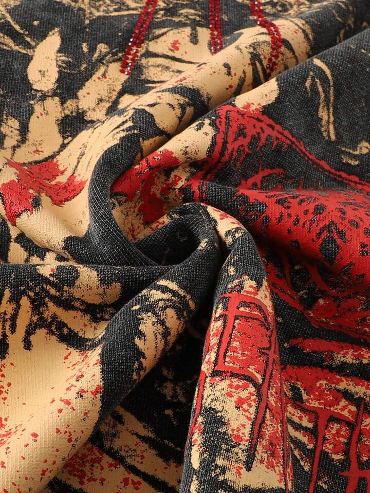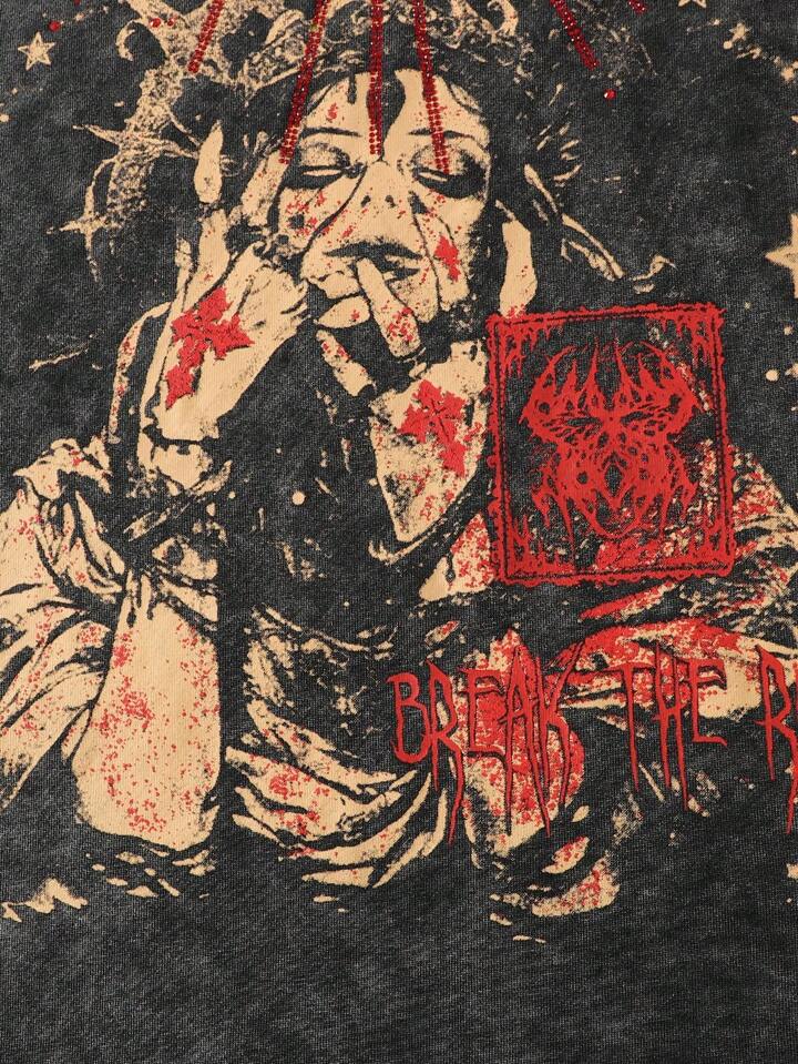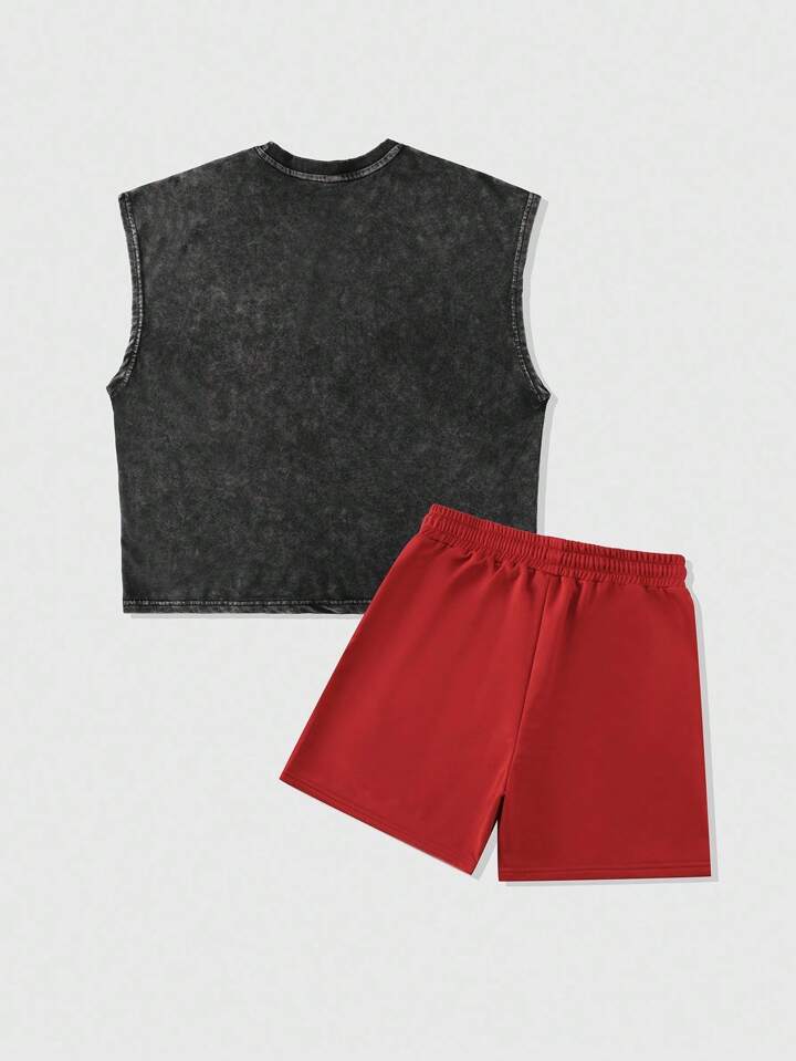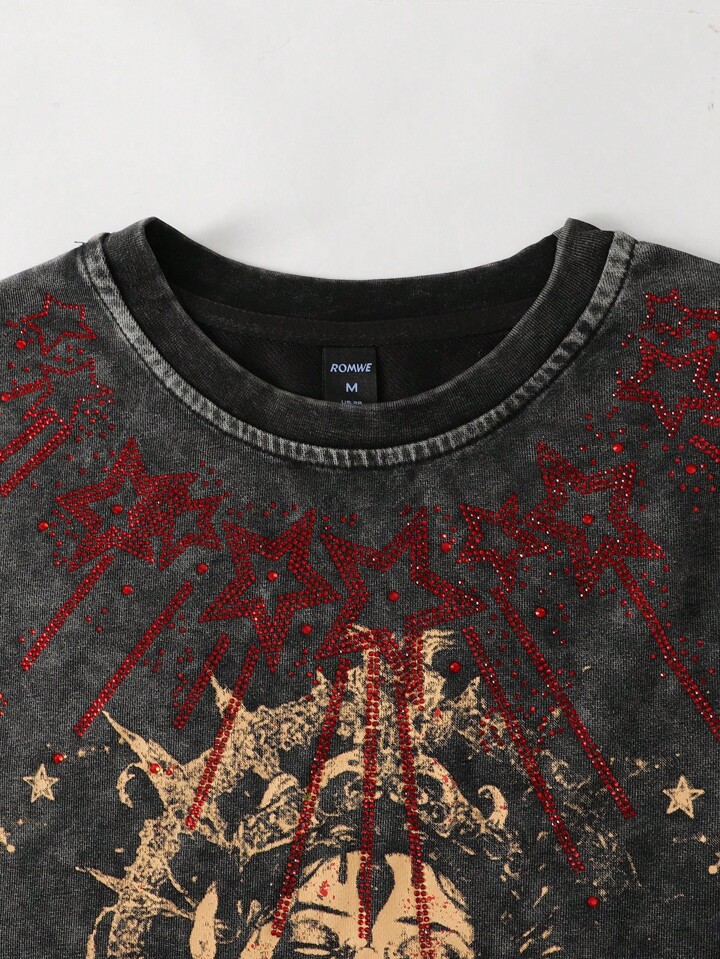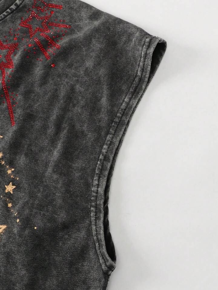 Goth Conjunto de chaleco lavado con estampado de brillo de diamantes para hombre