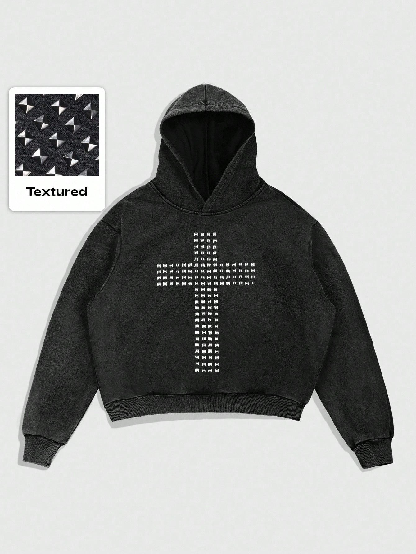 Goth Sudadera con capucha de manga larga con decoración de remaches para hombre