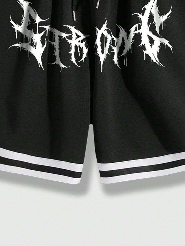 Goth Conjunto de camiseta de manga corta con estampado de silueta y pantalón corto tipo jersey de baloncesto para hombres, para la escuela