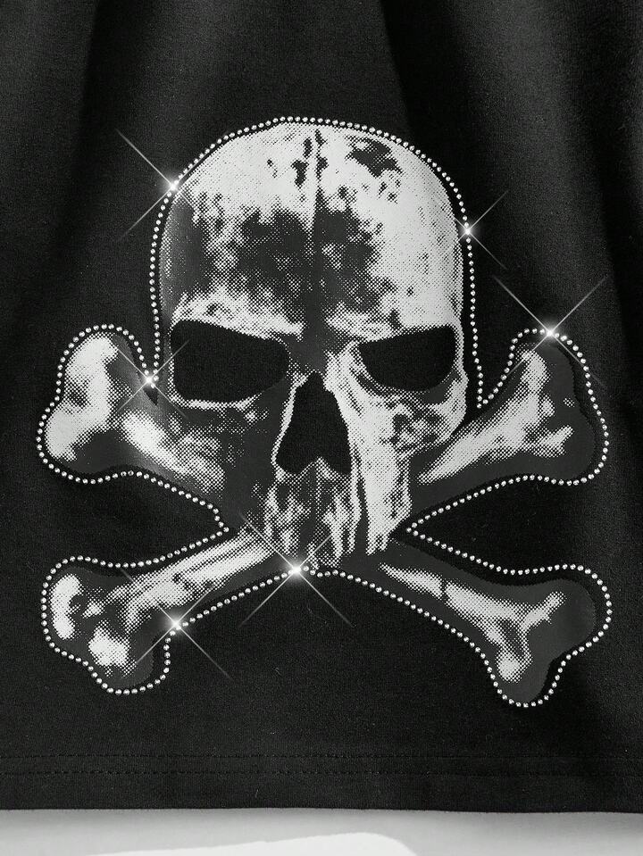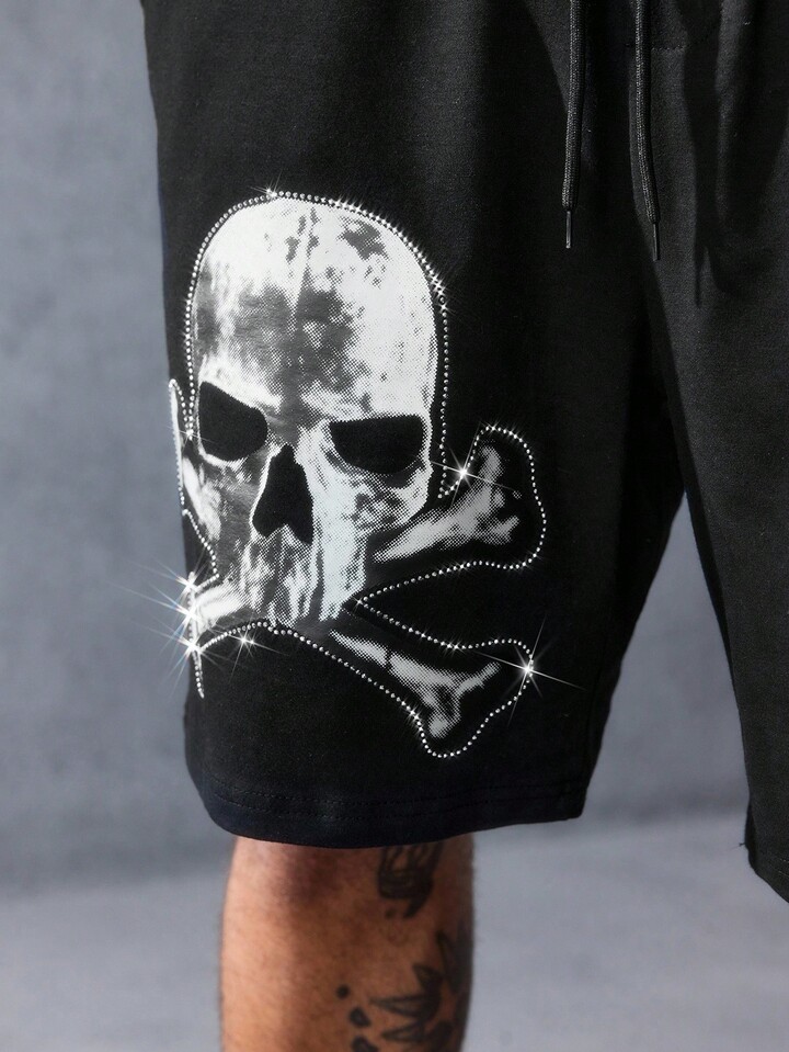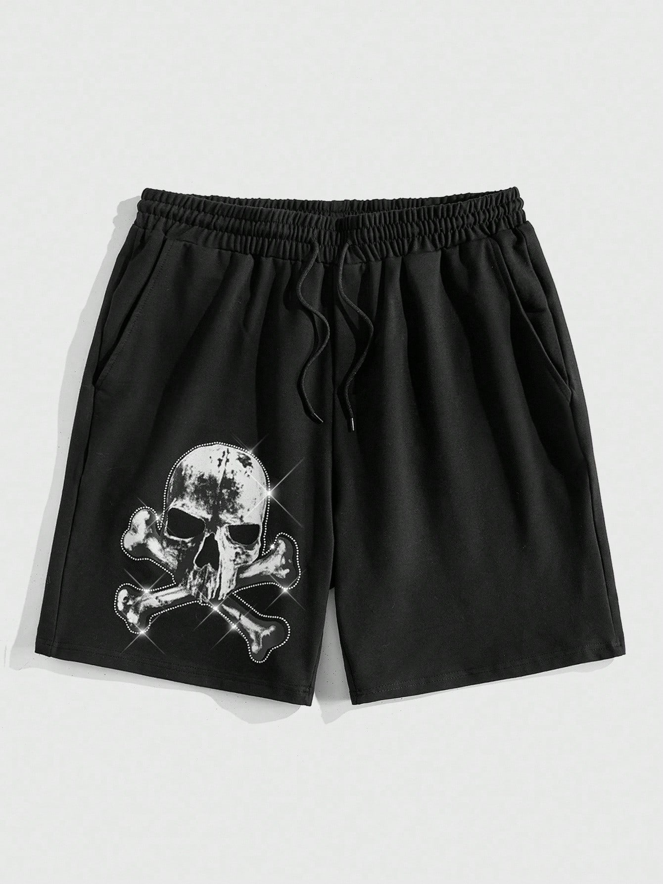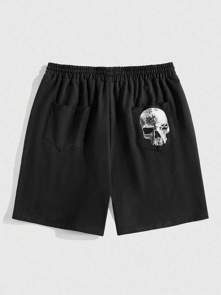 Goth Pantalones cortos casuales con estampado de esqueleto, cordón en la cintura y bolsillos, para Halloween