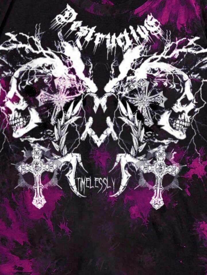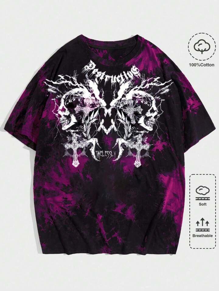Goth Camiseta de cuello redondo con estampado de calavera y tie-dye, estilo Y2K, para hombre, escuela