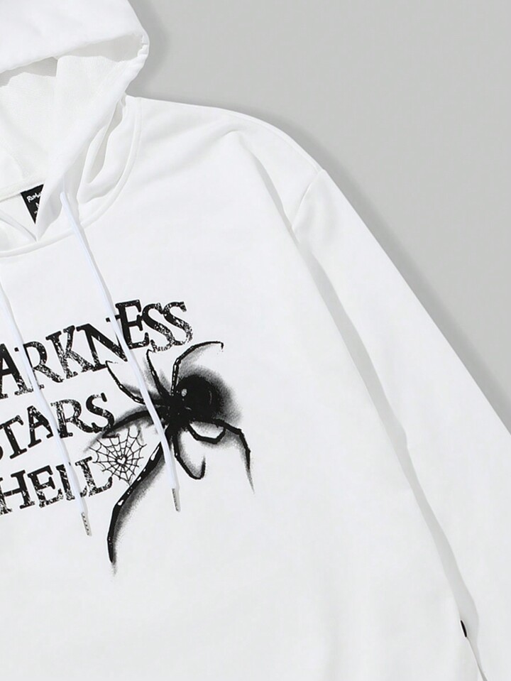Goth Sudadera Con Capucha Con Eslogan Impreso Masculino De Araña