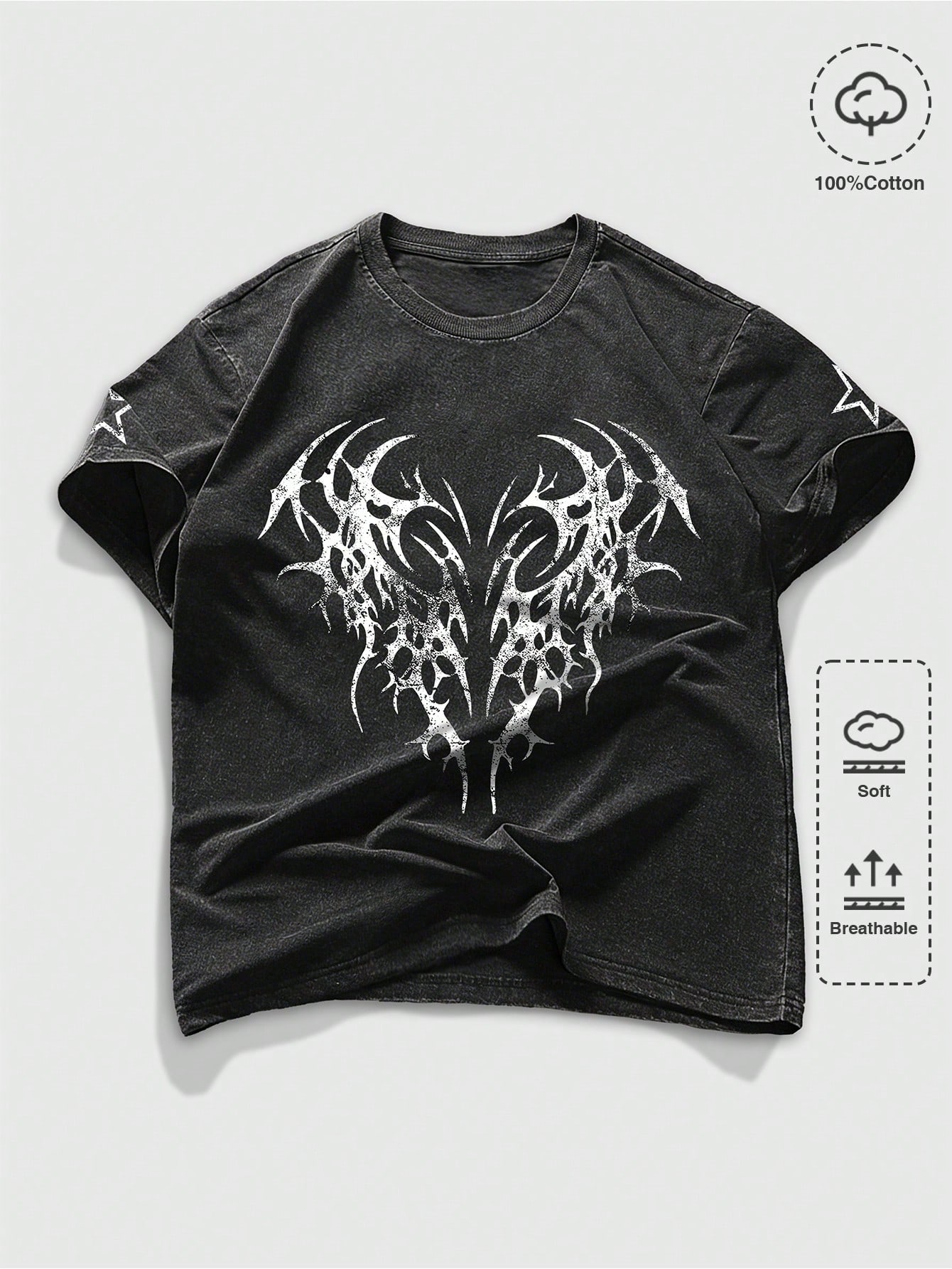 Goth Camiseta de verano para hombre 100% algodón, estilo casual y de moda, con estampado de estrella, hombros caídos, suelta y lavada, transpirable