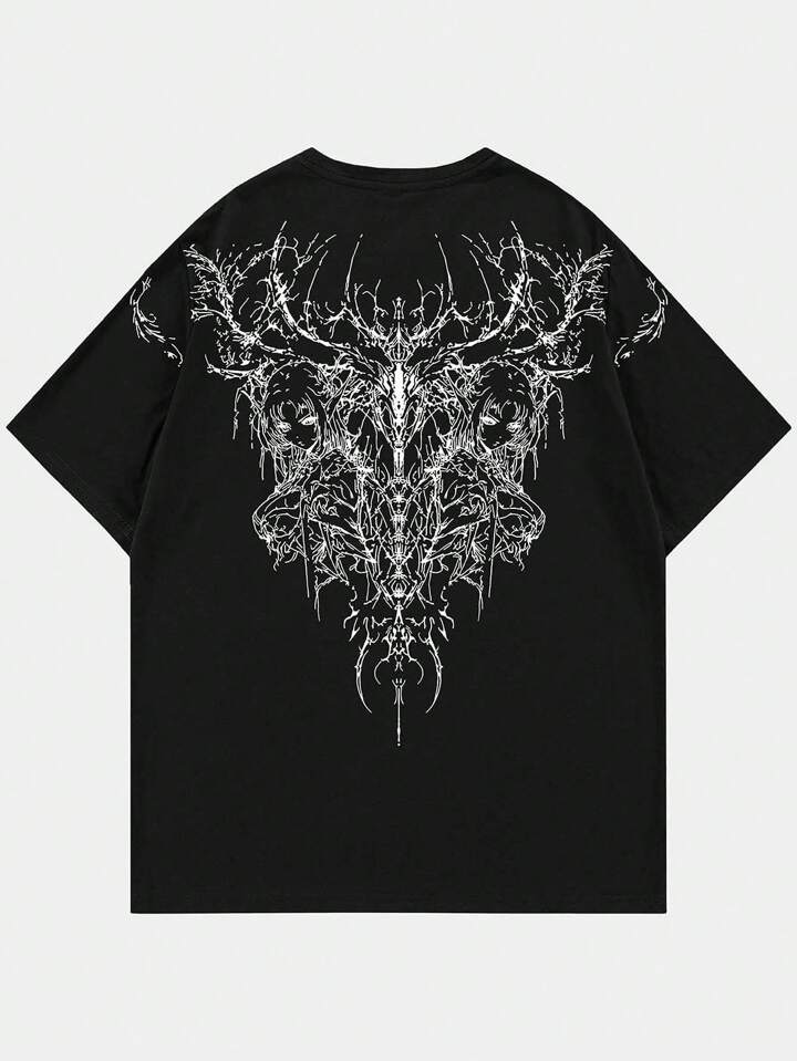 Goth Camiseta de manga corta con cuello redondo y estampado gráfico de estilo oscuro Y2K para hombre, de verano