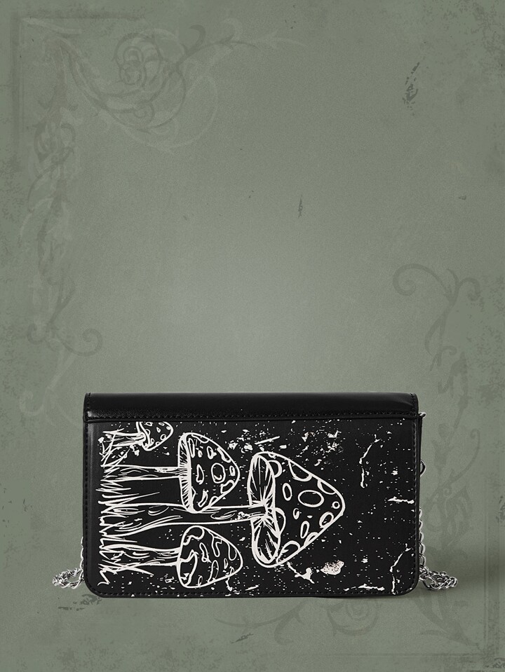 Goth Bolsa Cuadrada Con Solapa Con Patrón De Setas