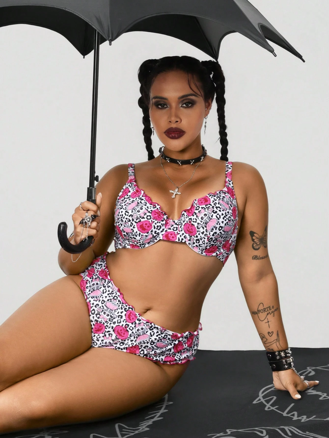 Goth Nuevo conjunto de traje de baño de mujer para vacaciones de verano en la playa, con estampado de leopardo y calavera, estilo punk y de festival de música, talla grande