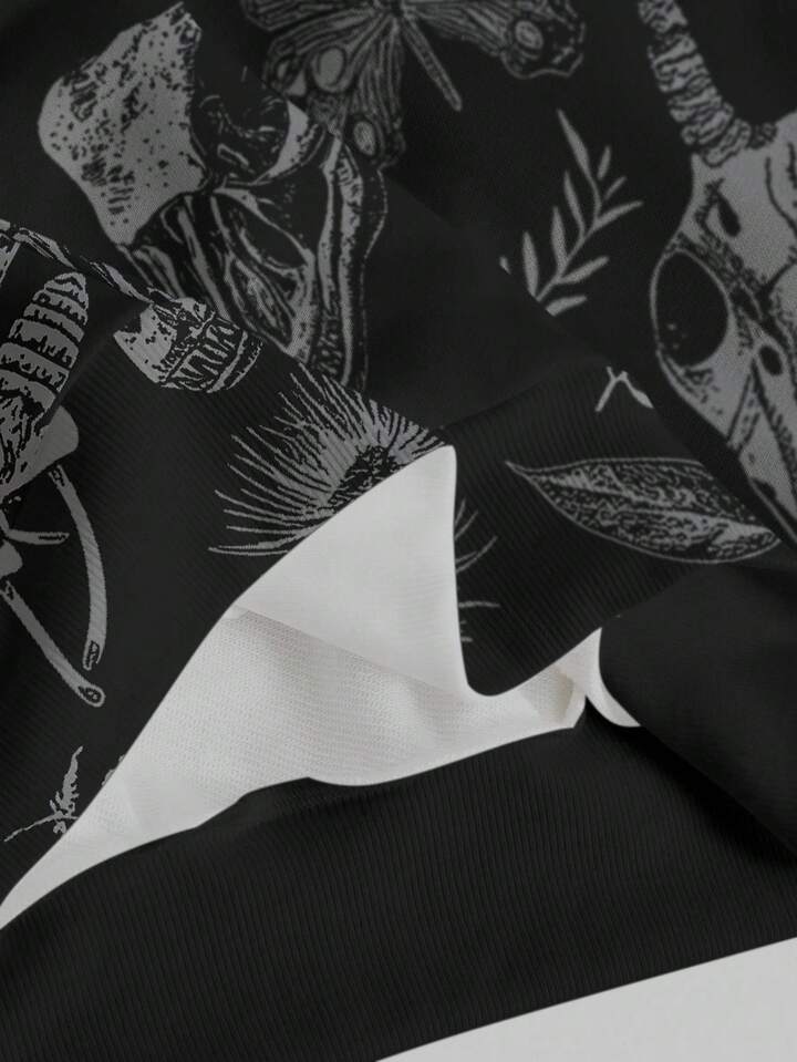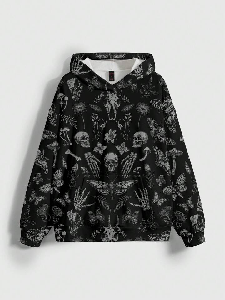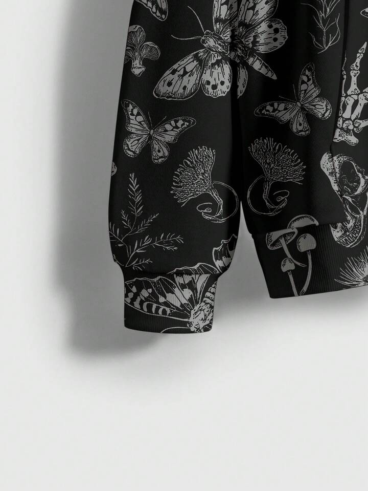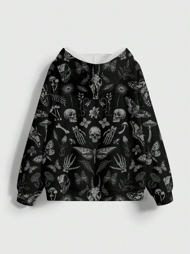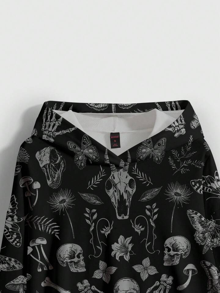 Goth Sudadera con estampado todo sobre de setas gigantes, calaveras, polillas y mariposas del bosque misterioso para mujer