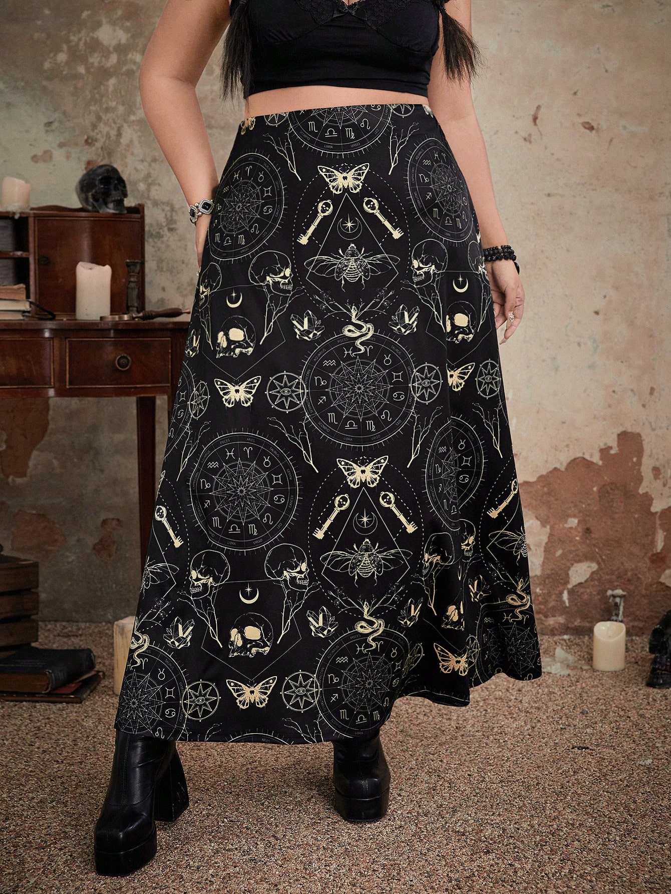 Goth Talla grande Falda con estampado de mariposa