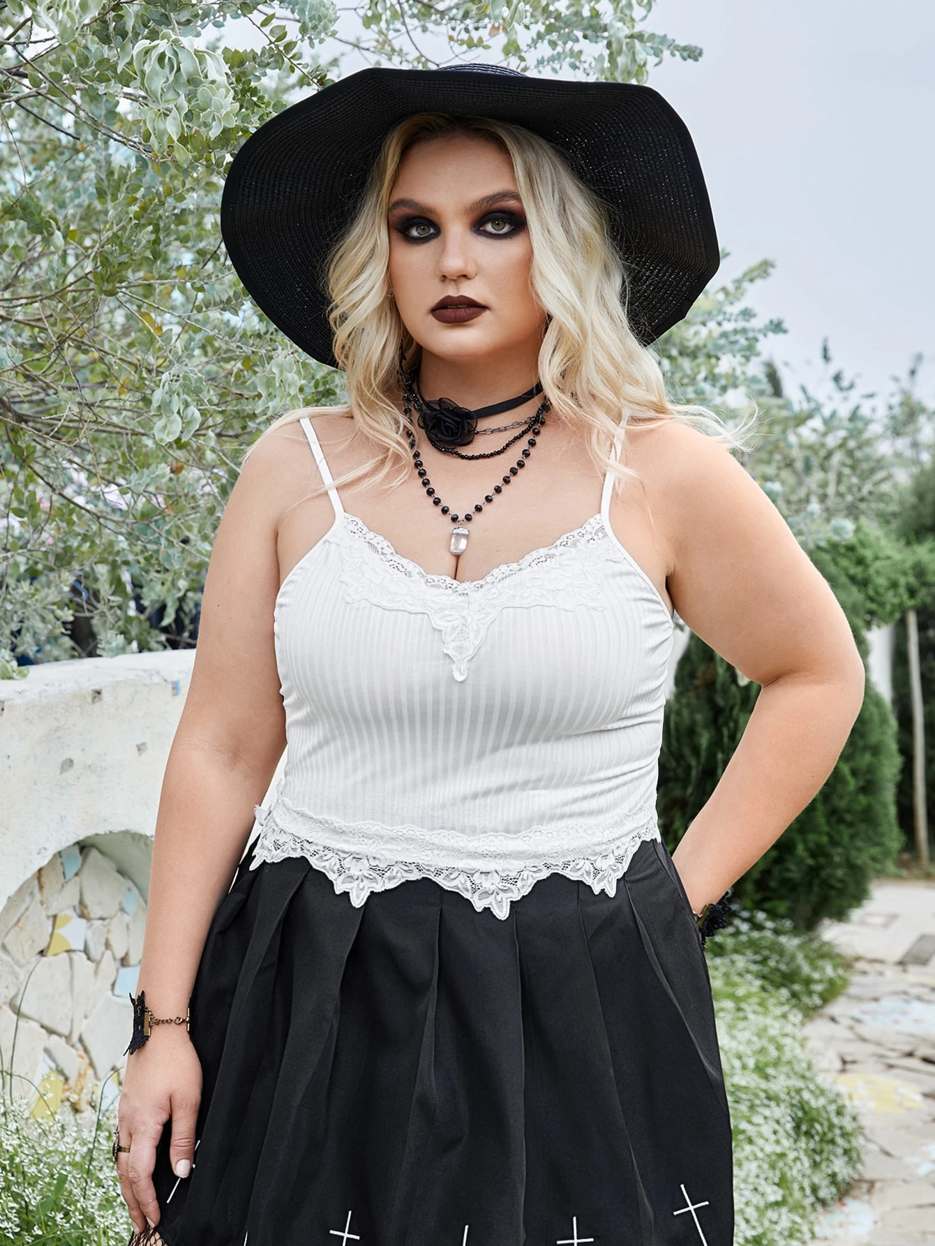 Goth Top de tirantes con encaje en contraste