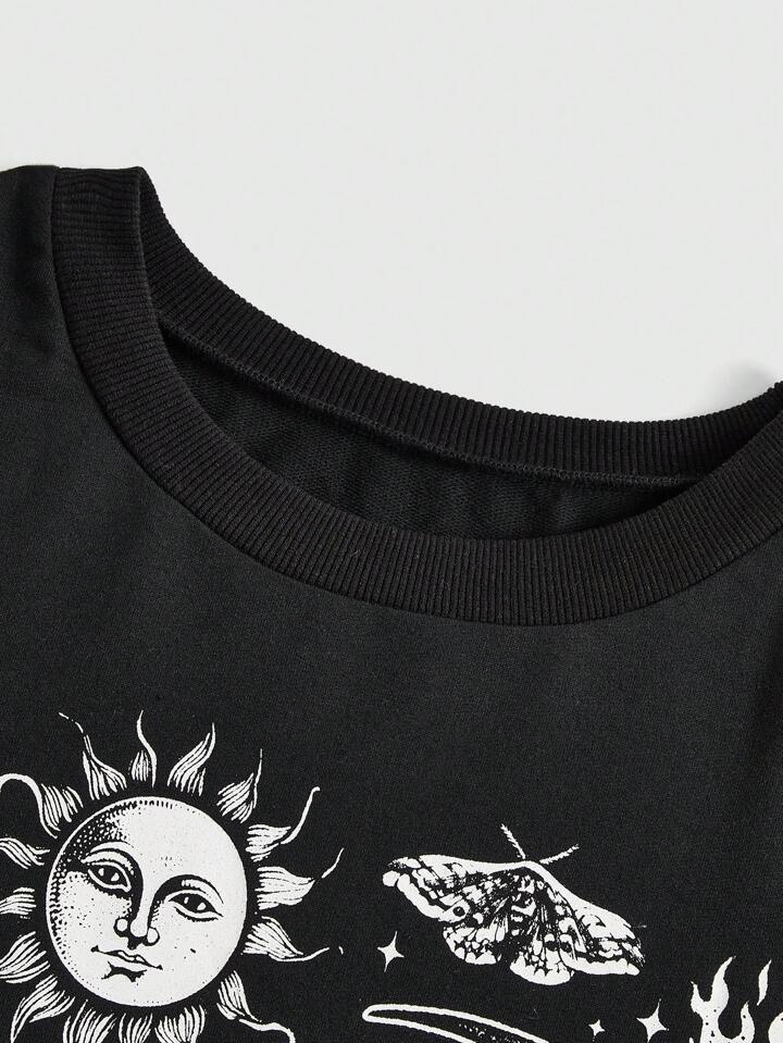 Goth Sudadera con hombros caídos y estampa gráfica, talla grande, escolar