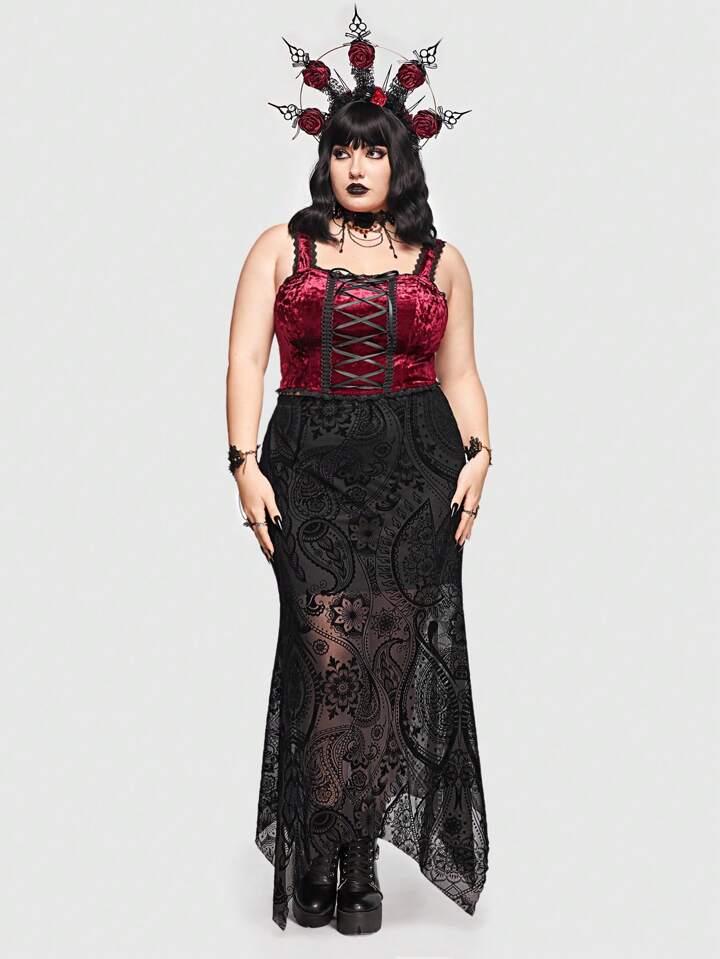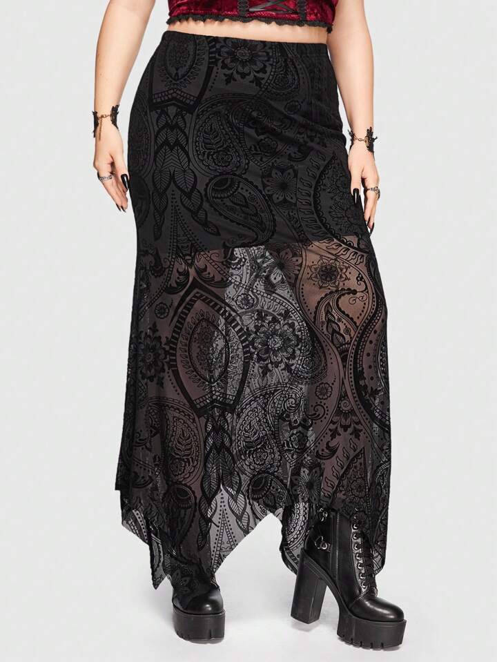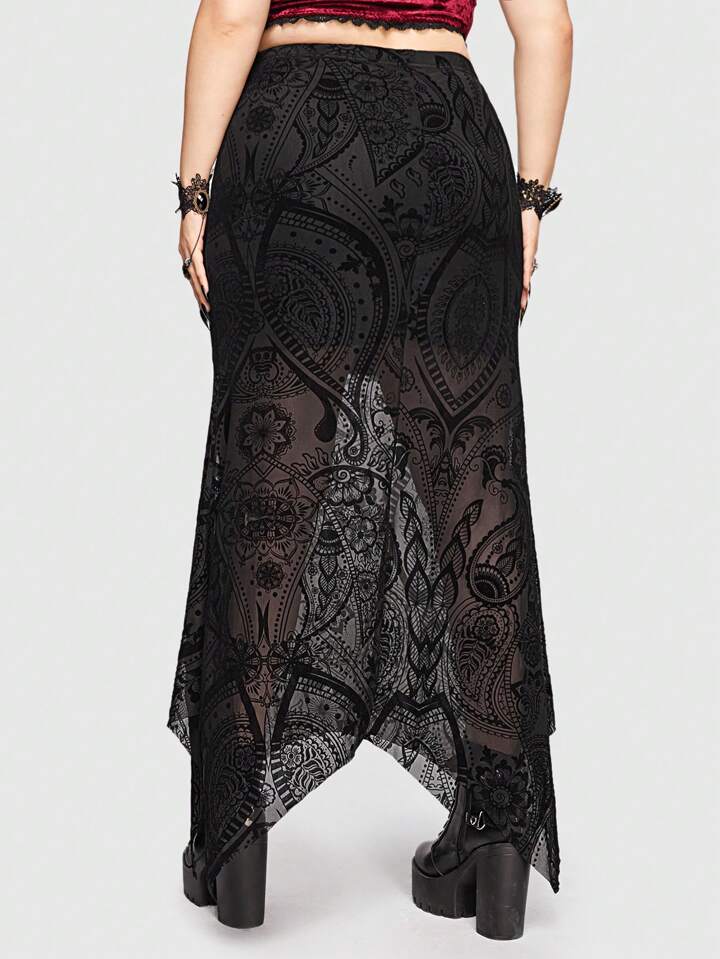Goth Talla grande Falda con estampado de paisley bajo asimétrico