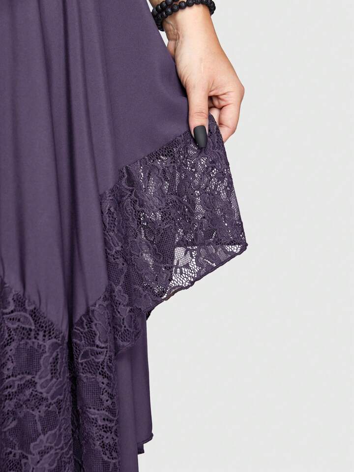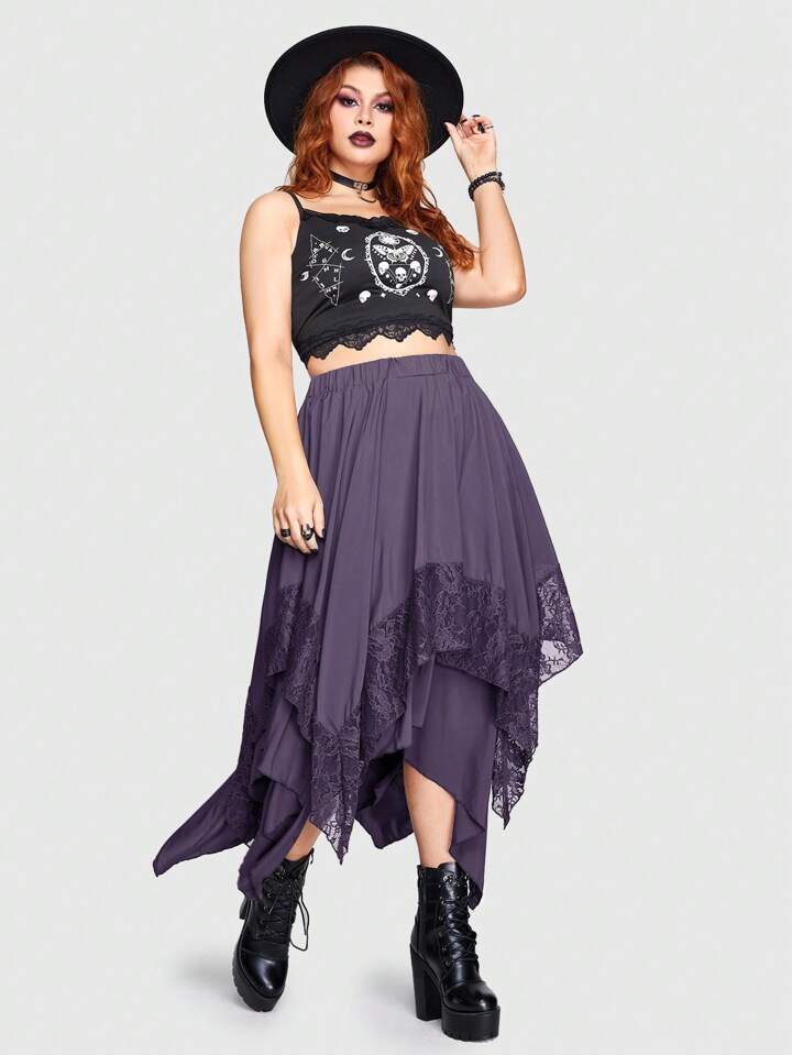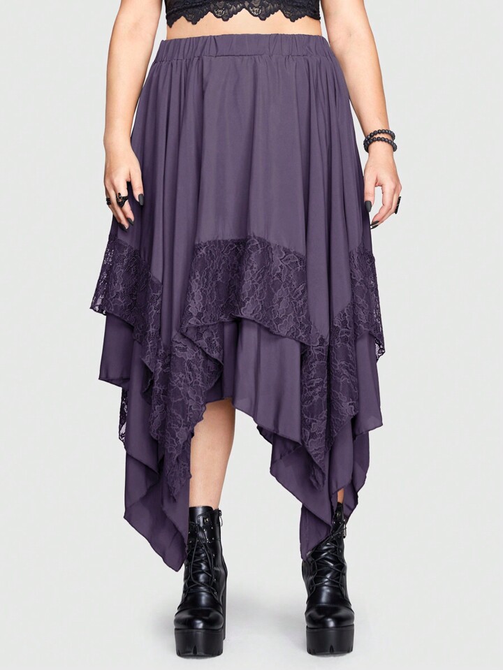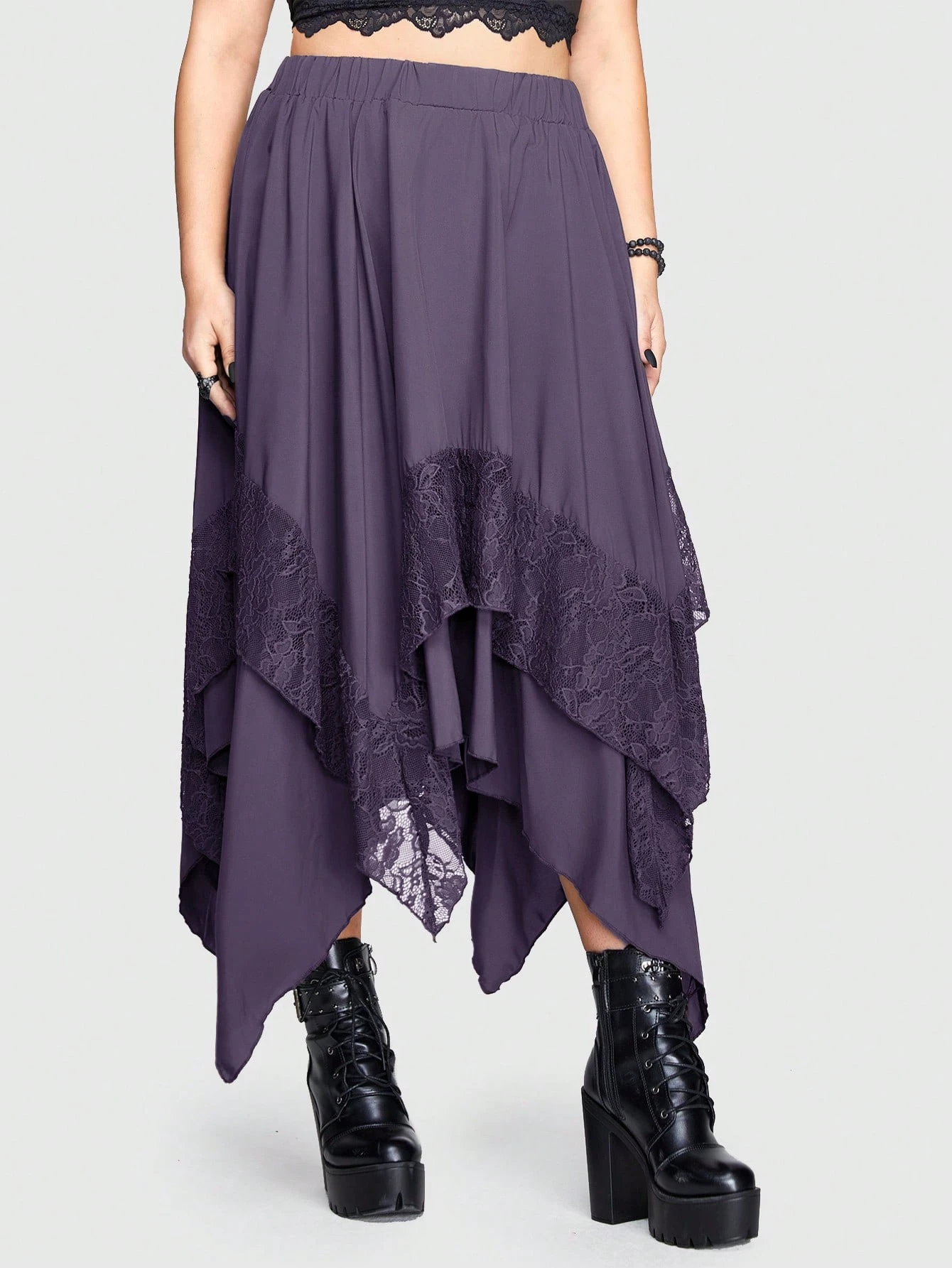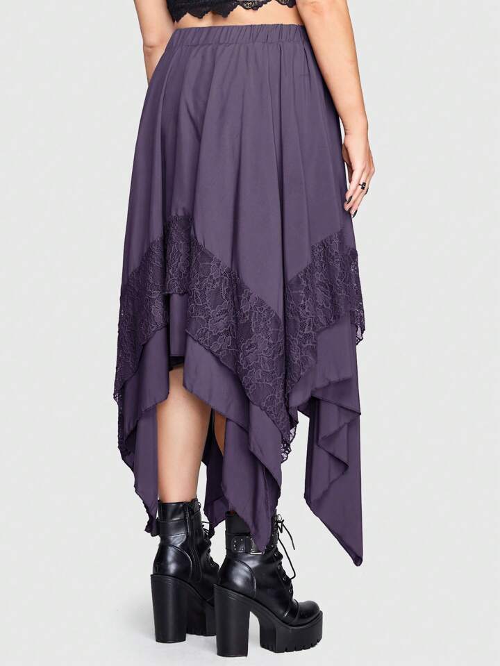 Goth Falda Con Panel De Encaje Y Dobladillo Asimétrico De Talla Grande