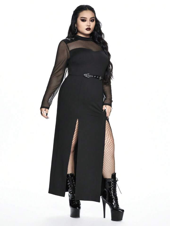 Goth Vestido con abertura alta sexy de malla por encaje para talla grande