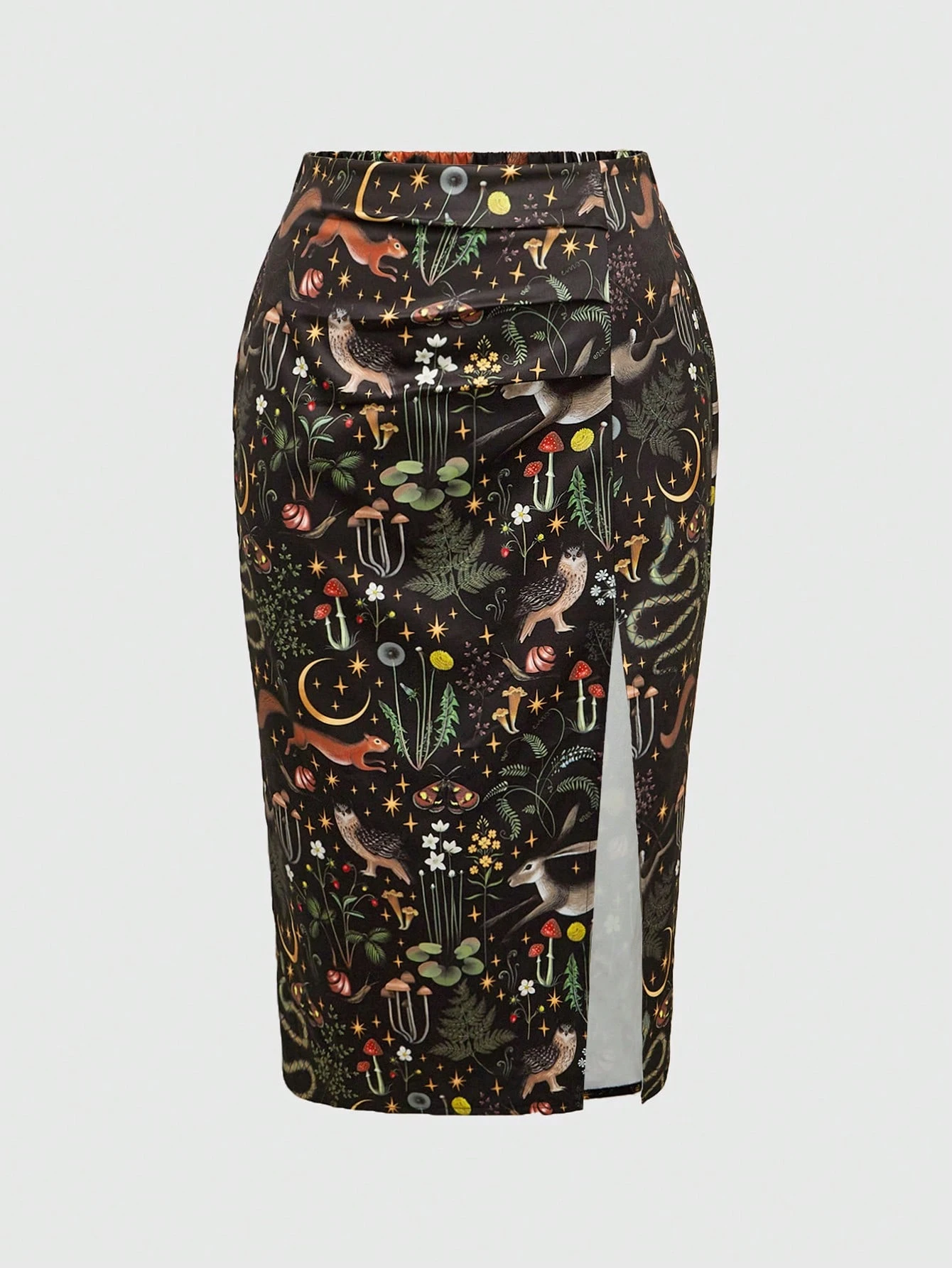 Goth Falda ajustado con abertura alta y estampado de serpiente botánico para mujeres de talla grande