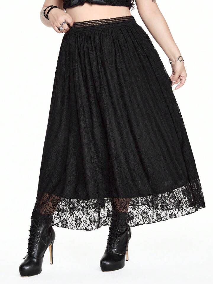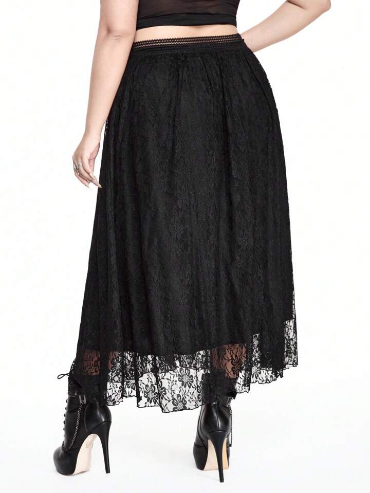 Goth Falda de talle alto elegante con estampado floral de encaje para mujer de tallas grandes
