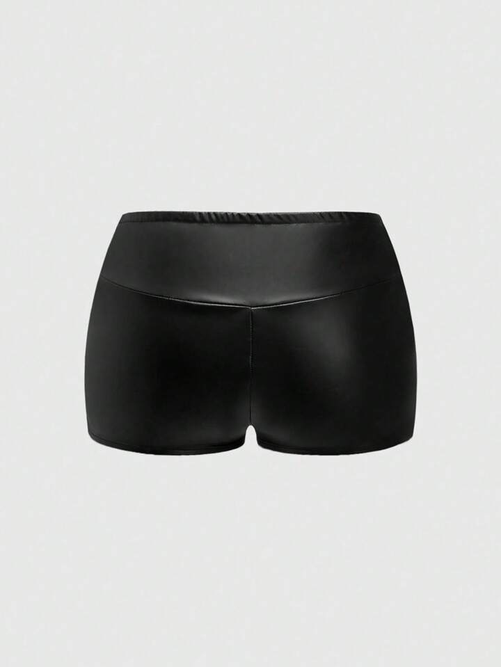 Goth Short de piel sintética ultrabajo en miniatura para mujer talla grande de estilo gótico punk sexy en negro con remaches, cadena, luna, círculo, diablo, pentagrama
