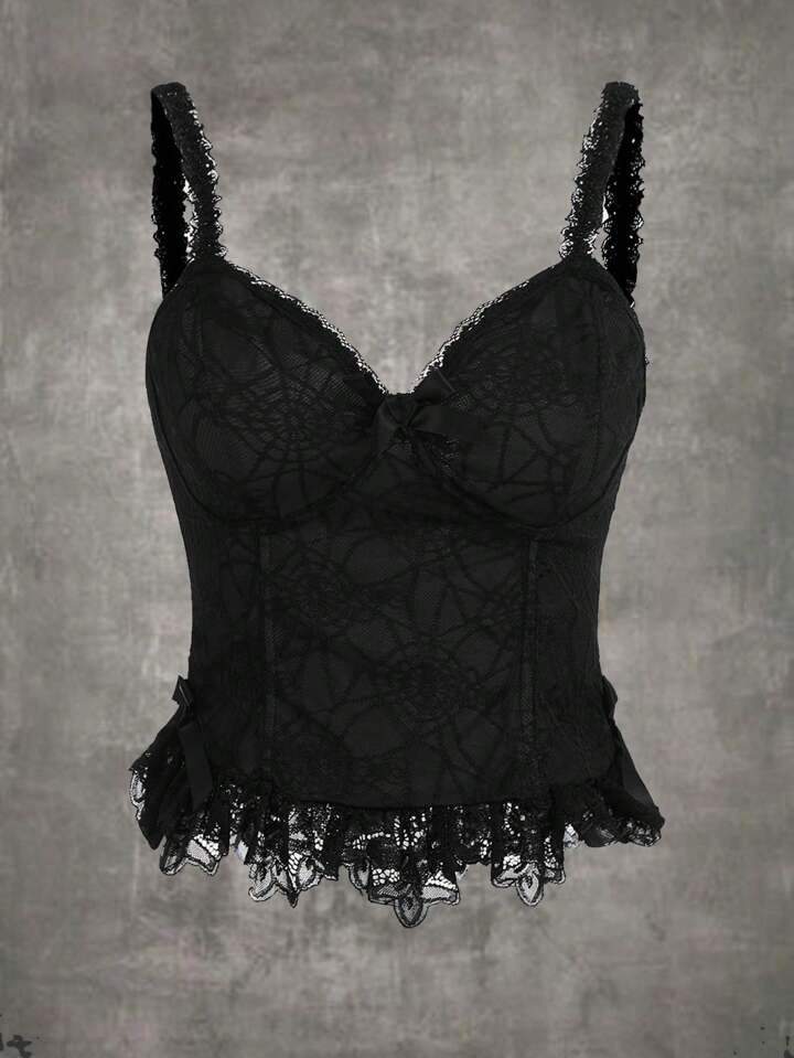 Goth Camiseta Sin Mangas Con Encaje De Telaraña Para Mujer Talla Grande