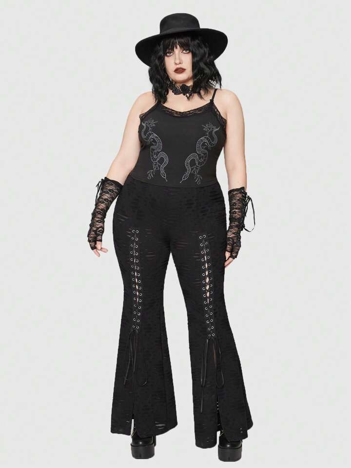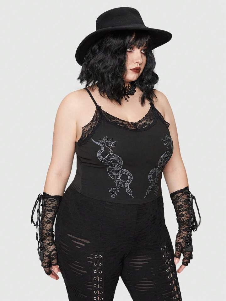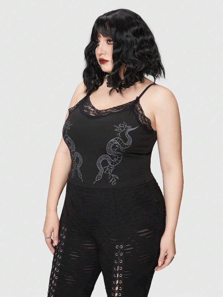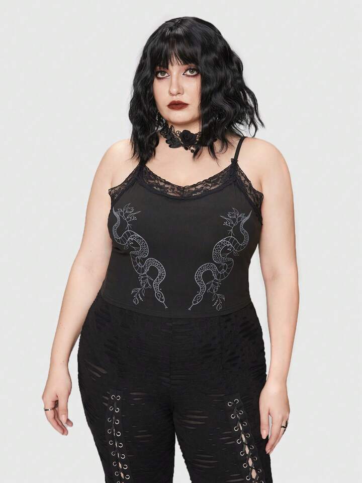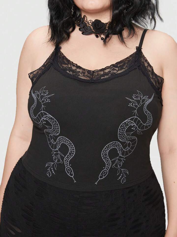 Goth Talla grande Cami crop serpiente con estampado con encaje en contraste