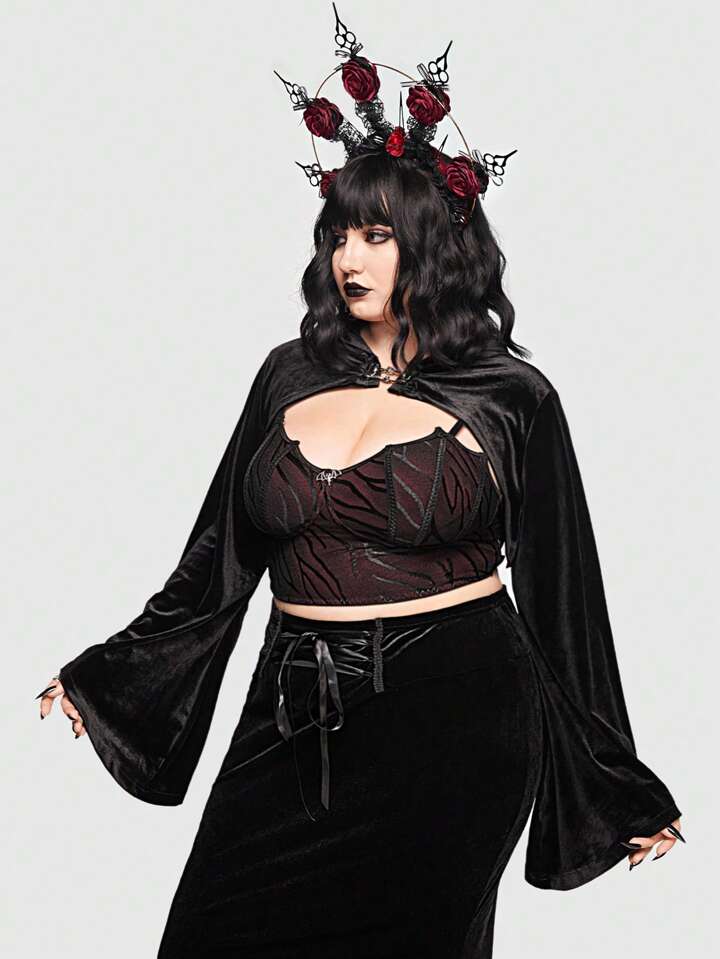 Goth Talla grande Capucha unicolor súper crop de terciopelo