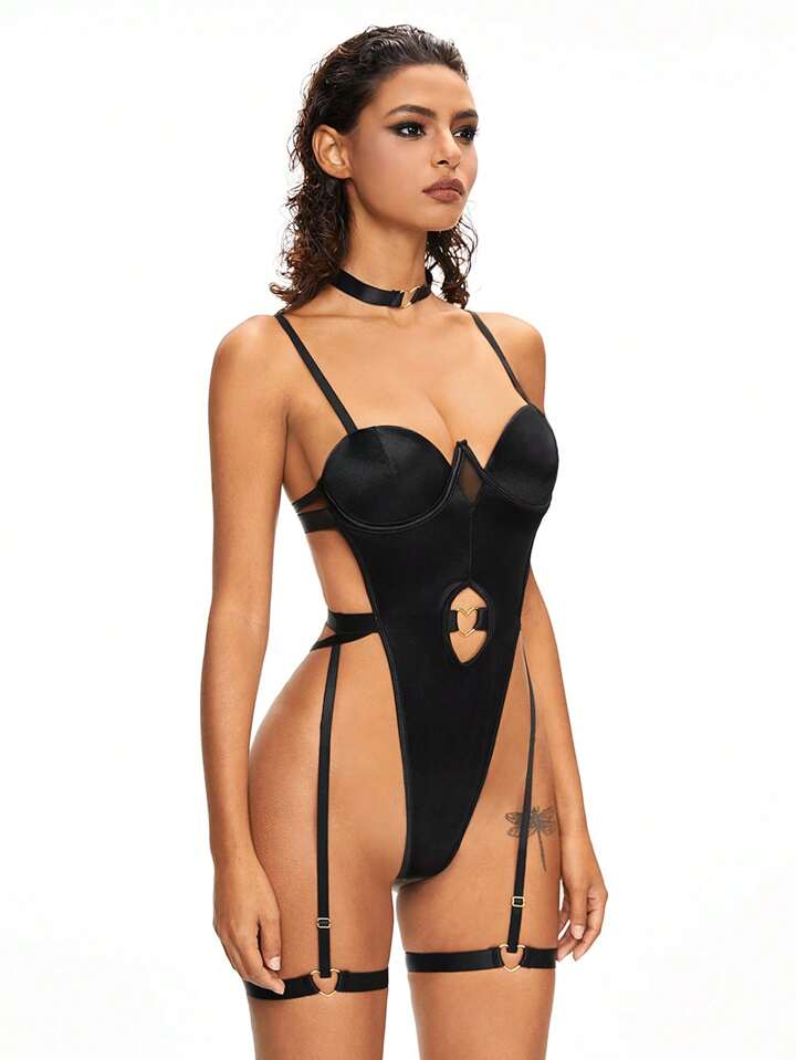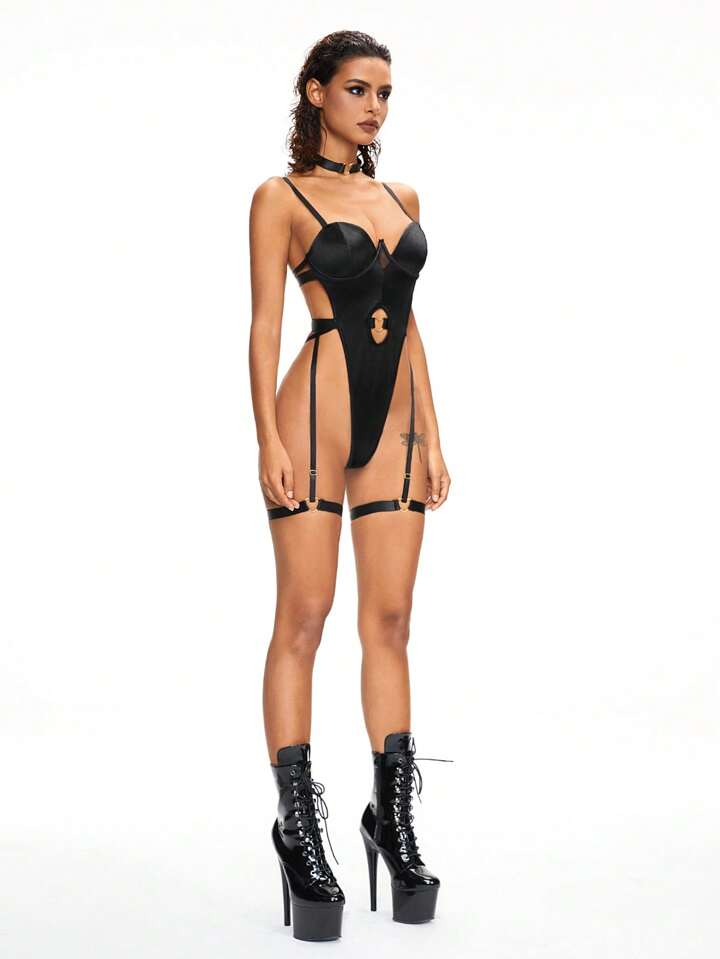 Lencería gótica punk sexy con aros y arnés de pierna