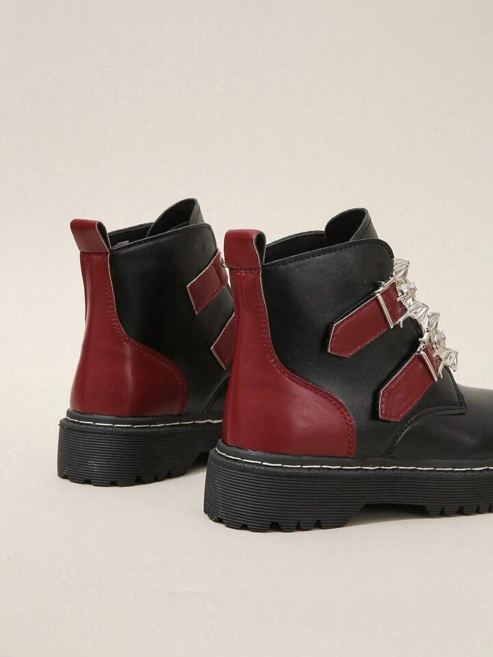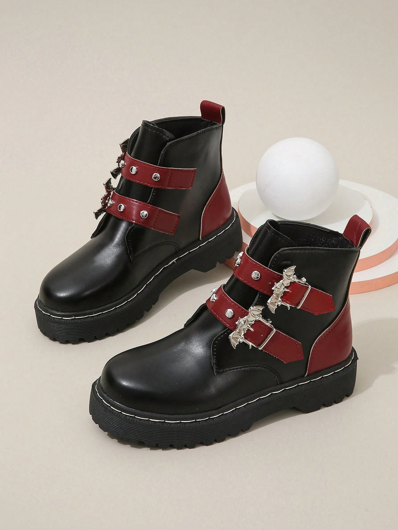 Goth estilo punk Suela gruesa viento de metal murciélago & remache tachuela Hebilla del cinturón alumno Botas , negro