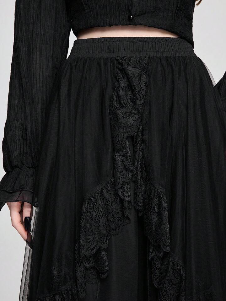Goth Falda de cintura alta hasta la rodilla con volantes de encaje delicado y elegante y tul en estilo renacentista para mujeres