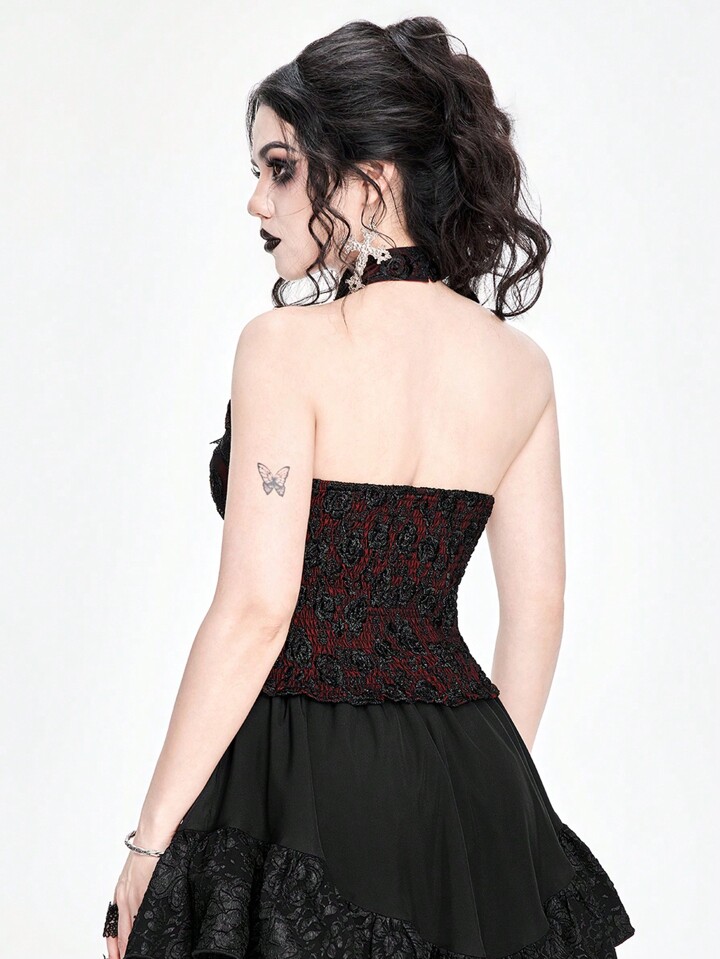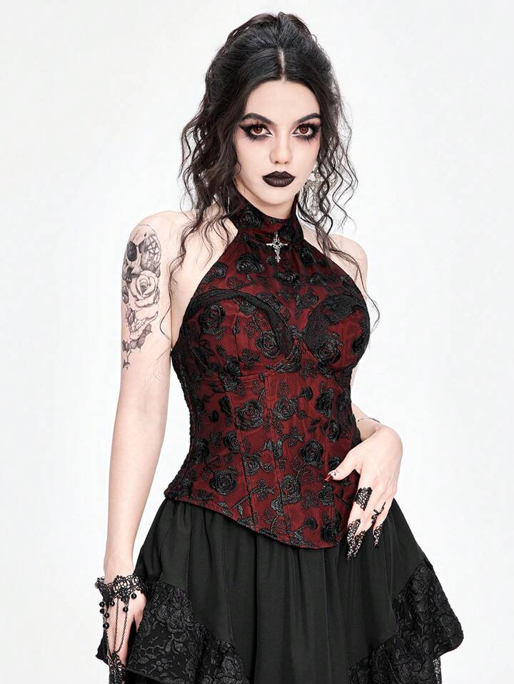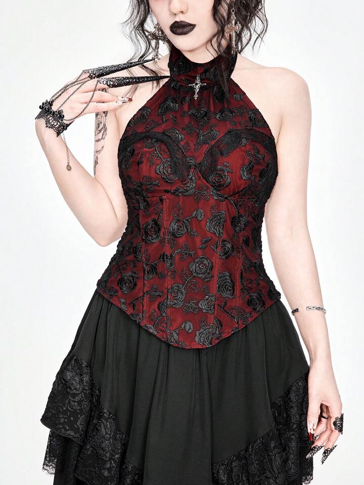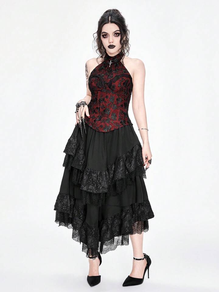 Goth Top de tirantes asimétrico para mujer con cuello cruzado de encaje sexy y colgante, con dobladillo asimétrico