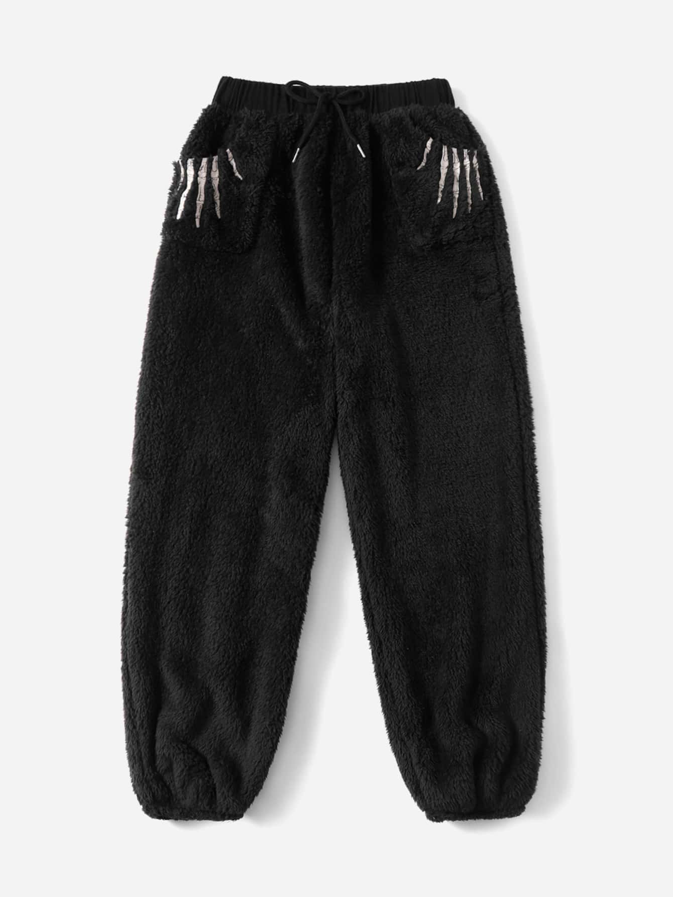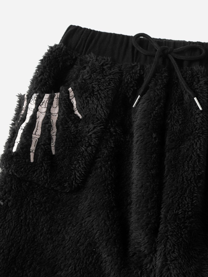 Goth Pantalones esqueleto con estampado de mano con cordón teddy