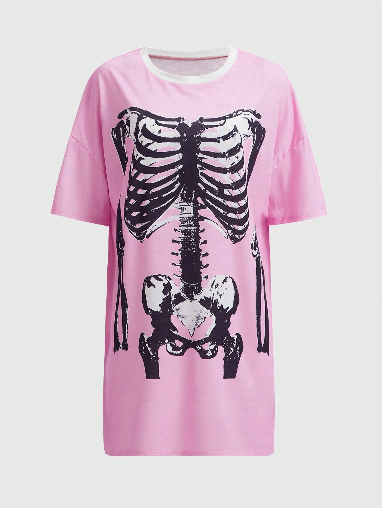 Goth Vestido homewear estampado de esqueleto de hombros caídos
