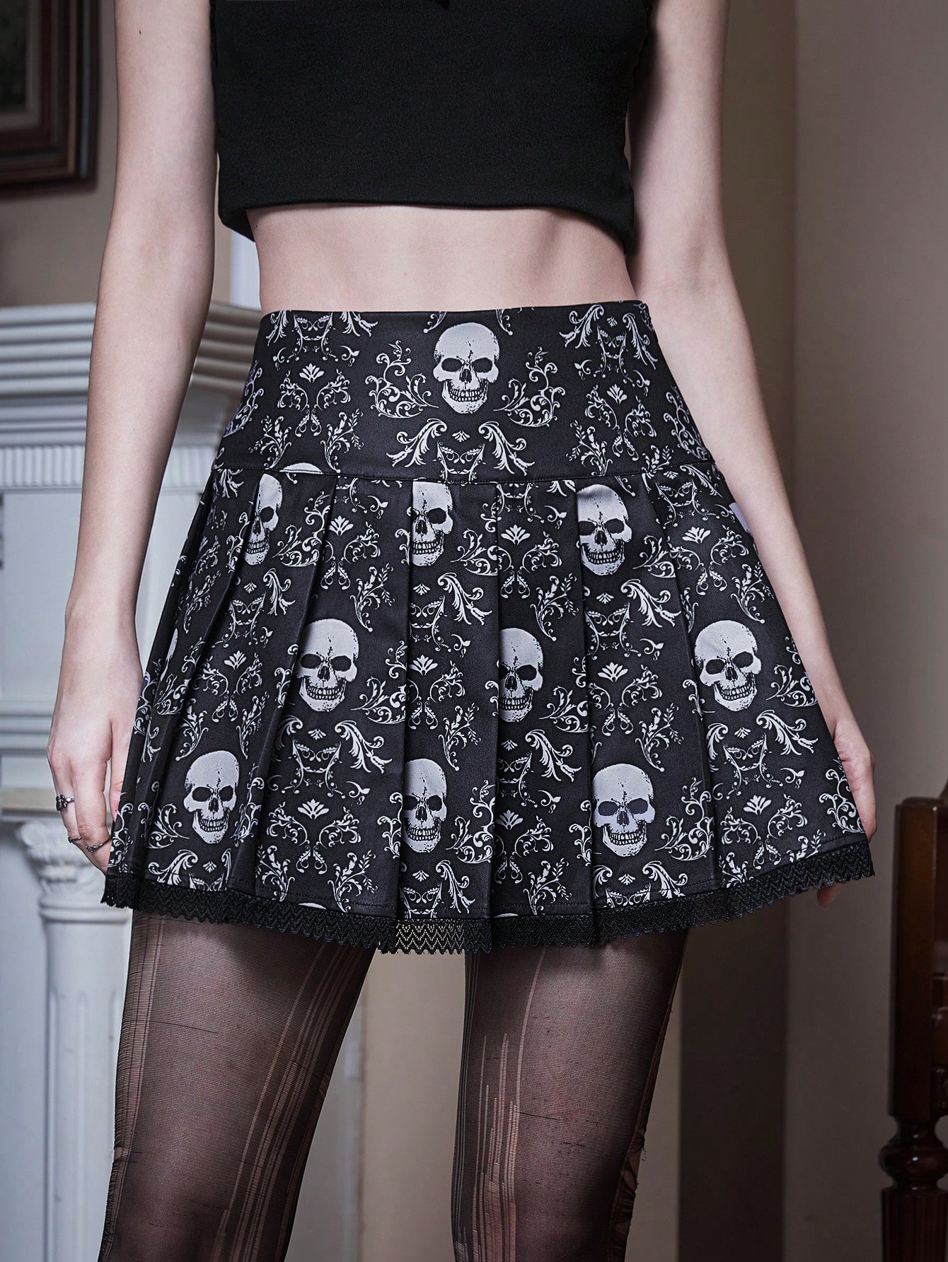 Goth Falda fruncido estampado de cráneo