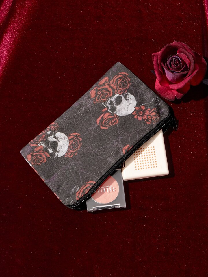 Goth Bolsa cuadrada con estampado de cráneo & de rosa