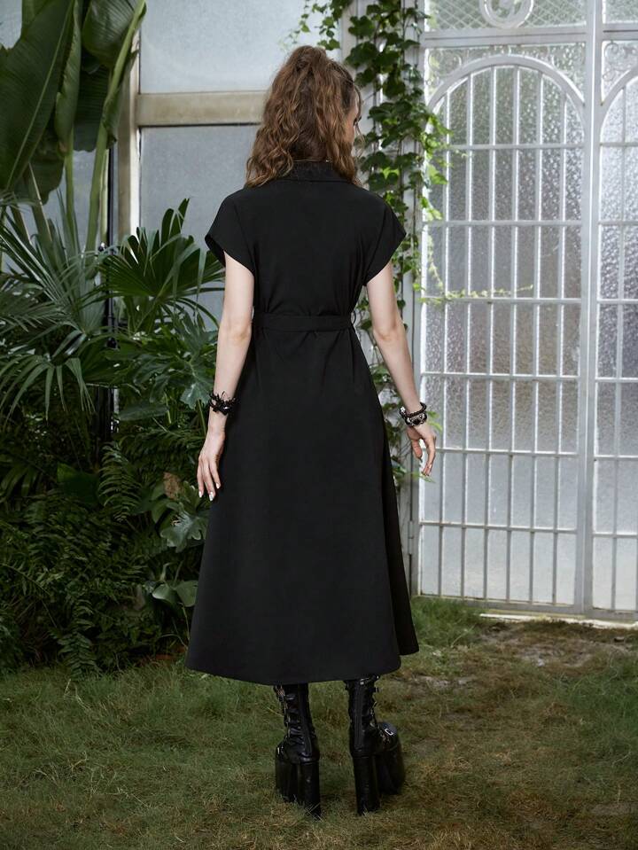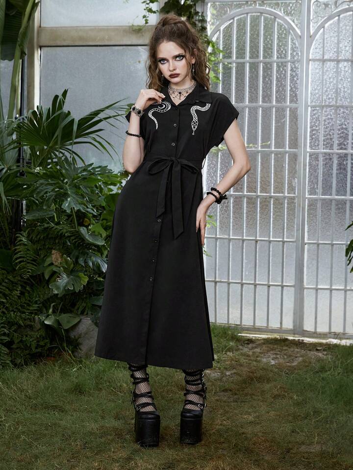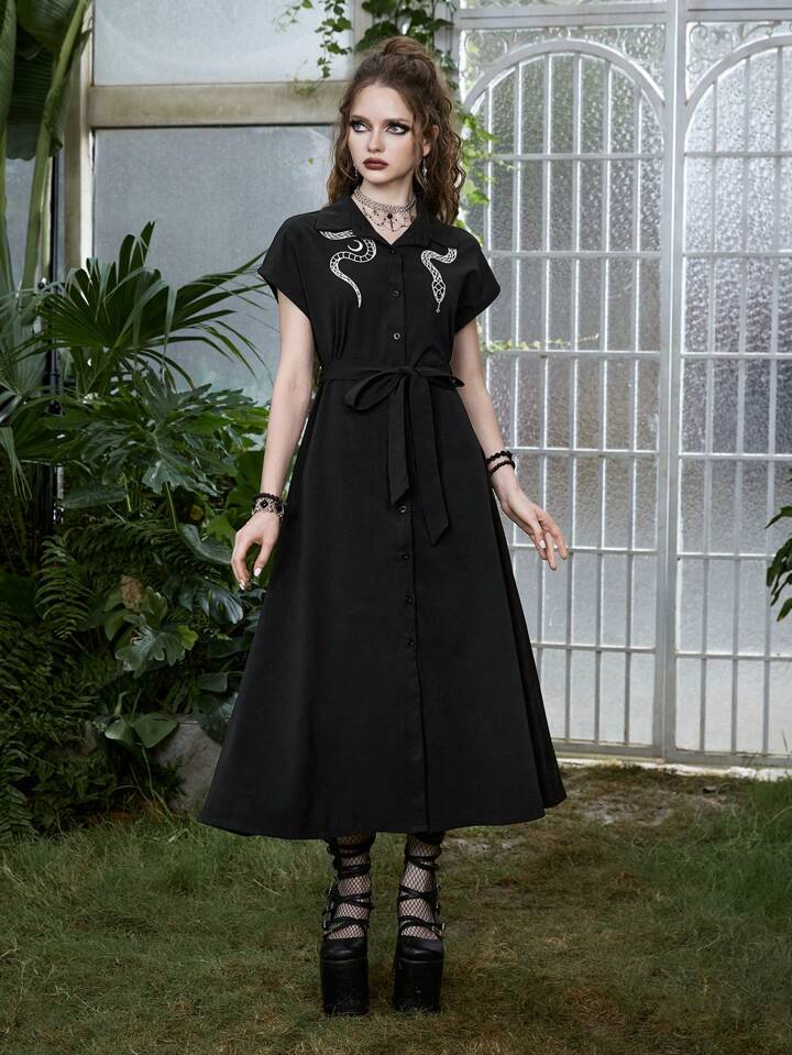 Goth Vestido camisero con estampado de serpiente y cinturón, escolar