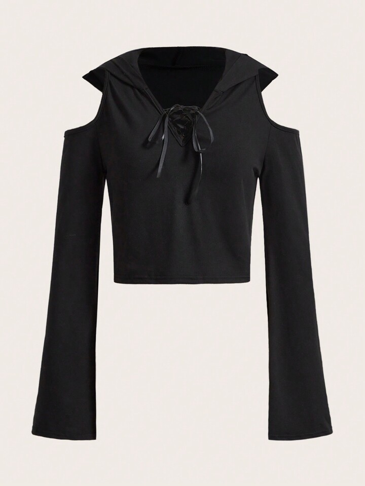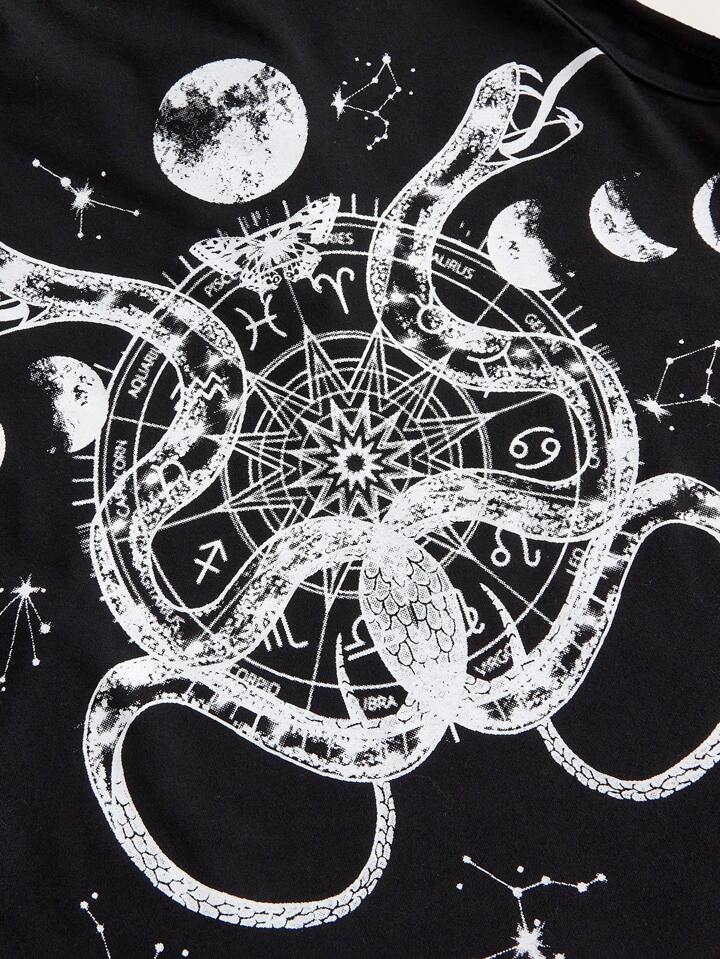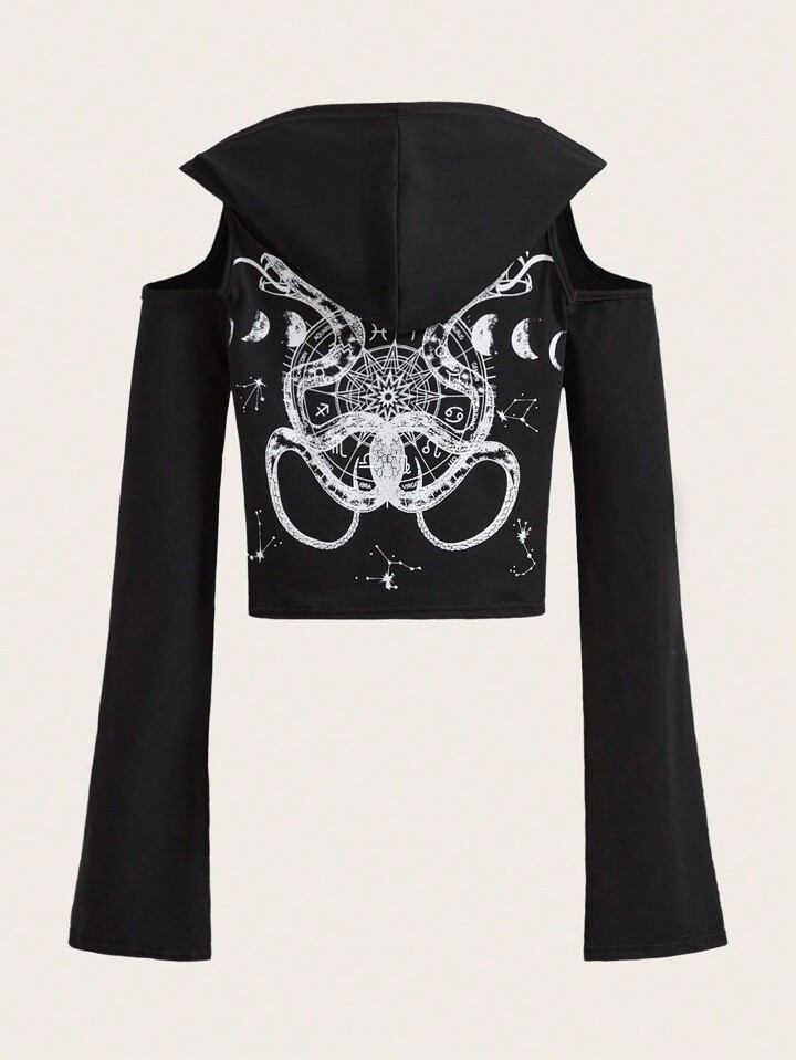 Goth Capucha crop con estampado de serpiente con cordón de hombros descubiertos