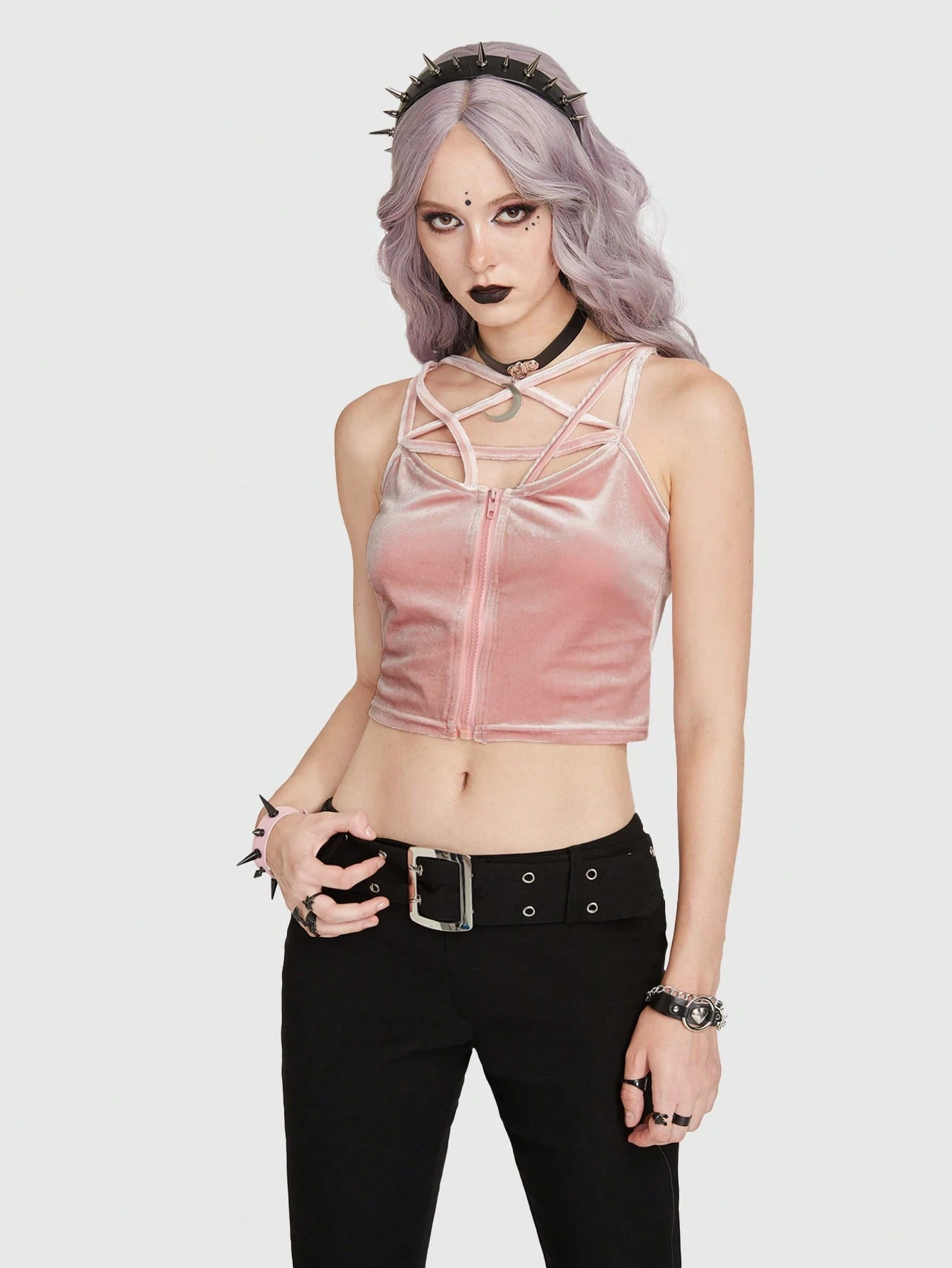Goth Top de tirantes unicolor con cremallera de terciopelo