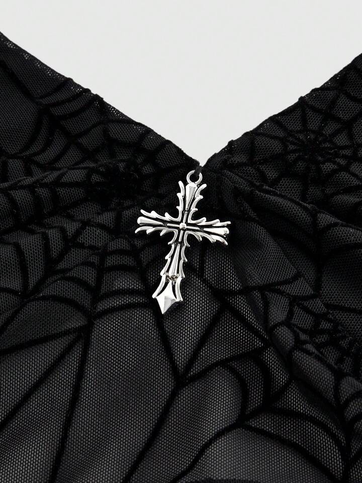 Goth Top sin mangas ajustado con cuello de halter y estampado de telaraña gótico para mujeres