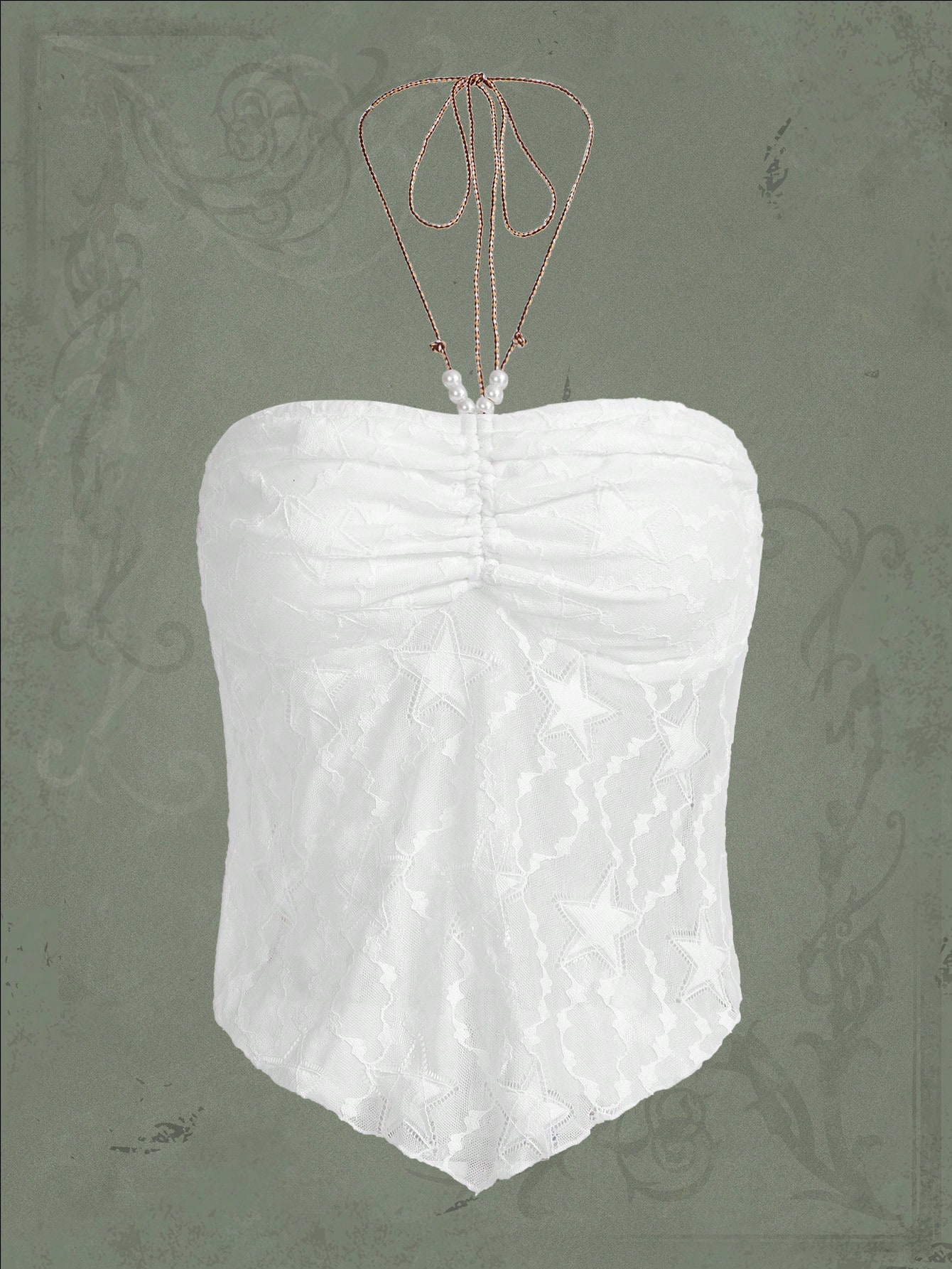 Goth Top halter con patrón de estrella fruncido de espalda abierta con cordón