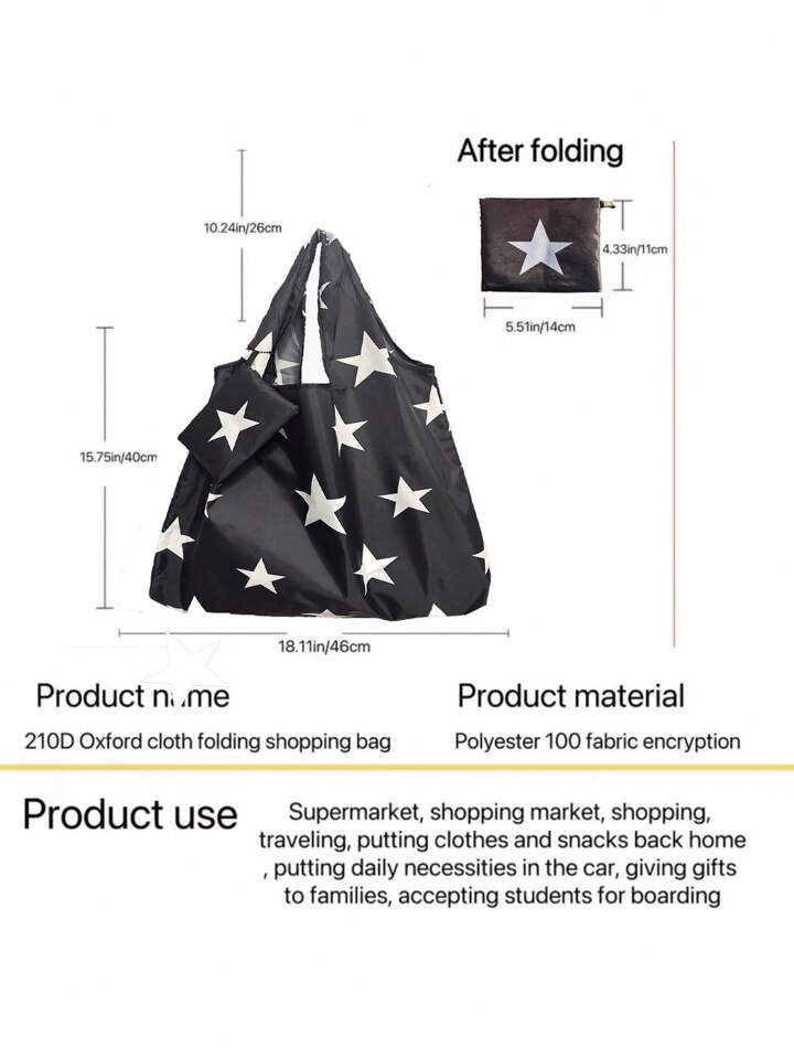 Goth Bolso de compra plegable con gran capacidad con estampado de estrellas, bolso de mujer con estrellas huecas y de moda