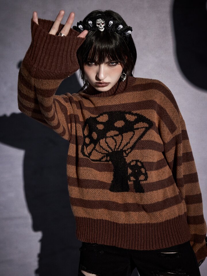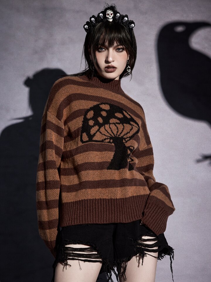 Goth Jersey Con Patrón A Rayas Y Setas Con Hombros Caídos