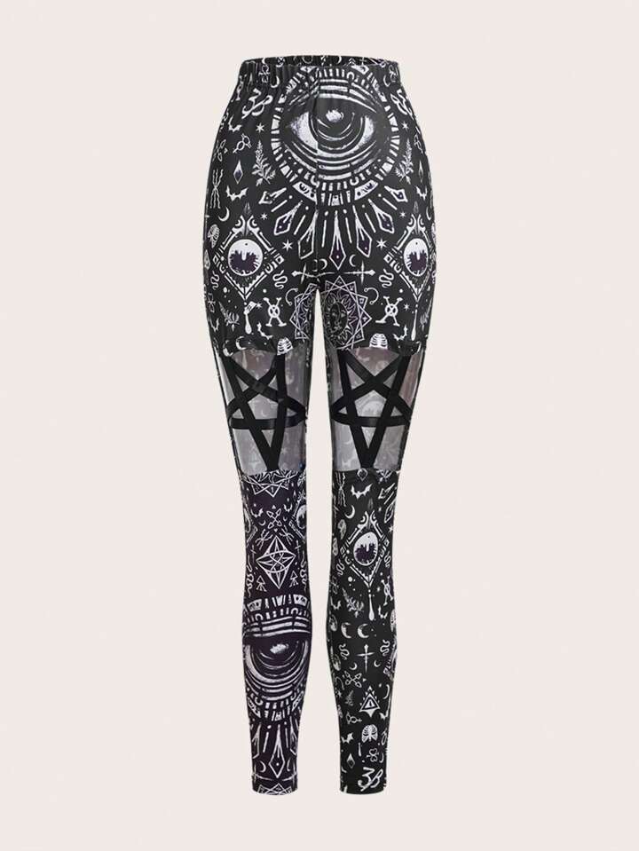Goth Leggings con estampado de sol y luna