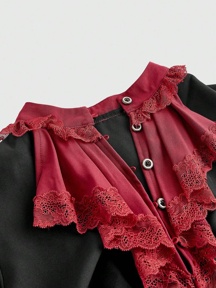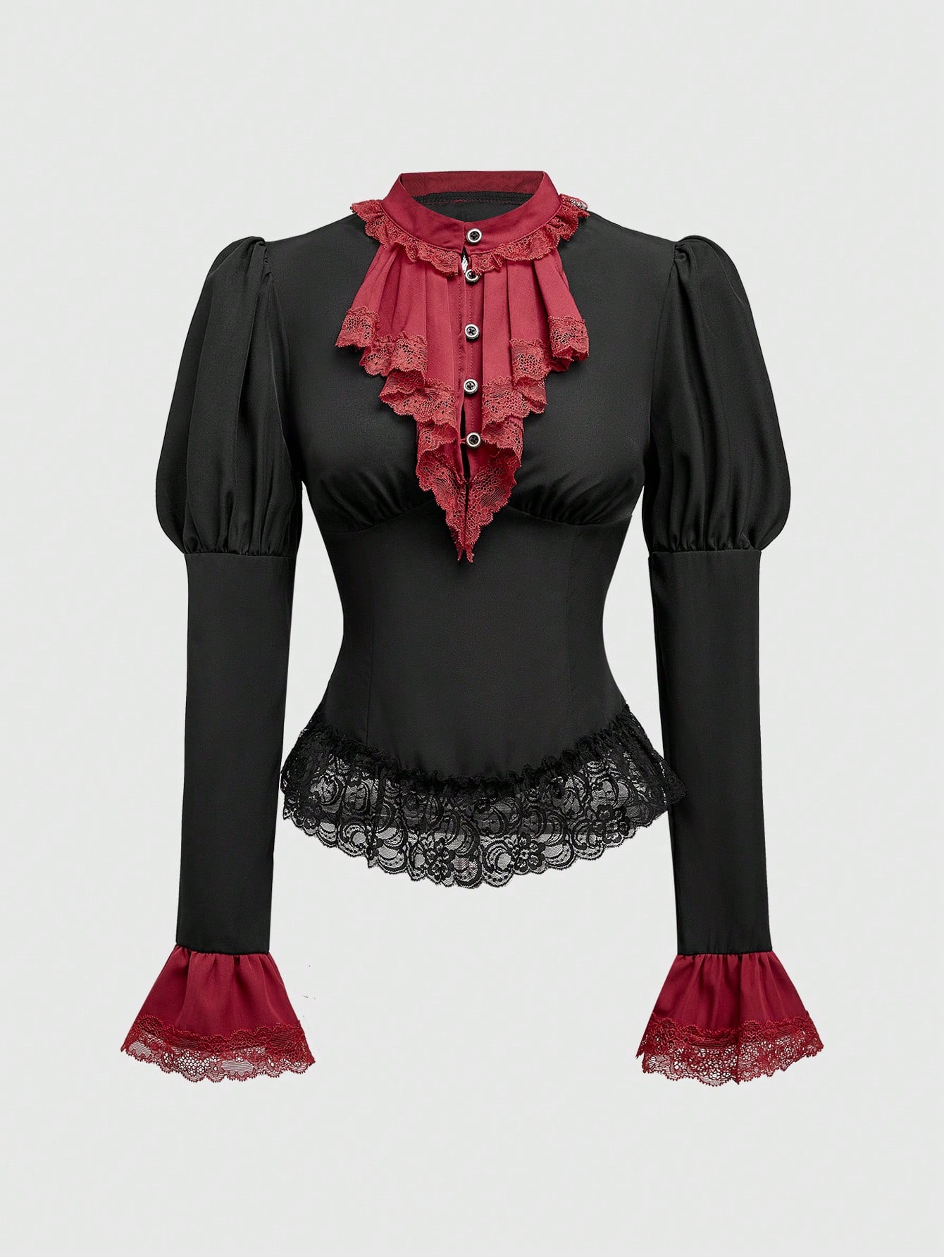 Goth Blusa con volantes de cuello rojo oscuro vintage, cintura ceñida para mujeres, ideal para el Día de San Valentín
