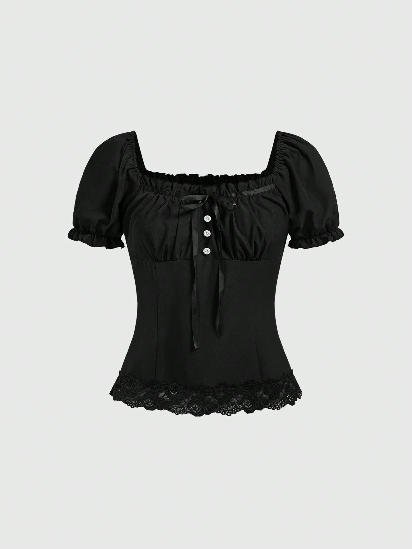 Goth Blusa de mujer de manga corta con cuello cuadrado, estilo vintage, elegante y casual, con lazo negro de moda, silueta delgada y única, estilo retro Y2K