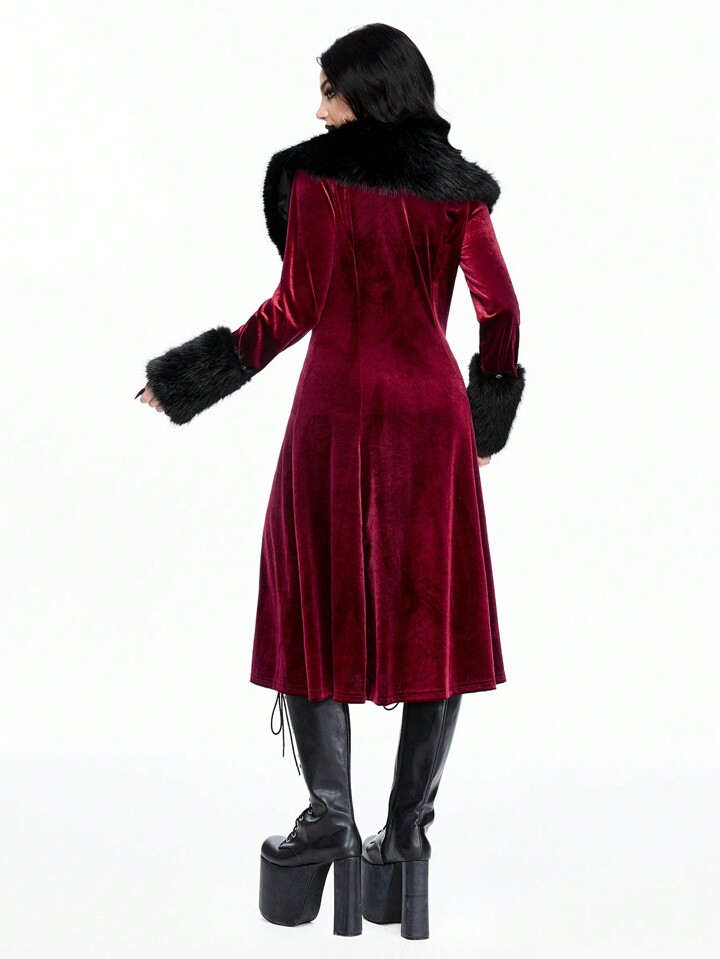 Goth Abrigo tipo gabardina vintage para mujer con parches de felpa y vuelo