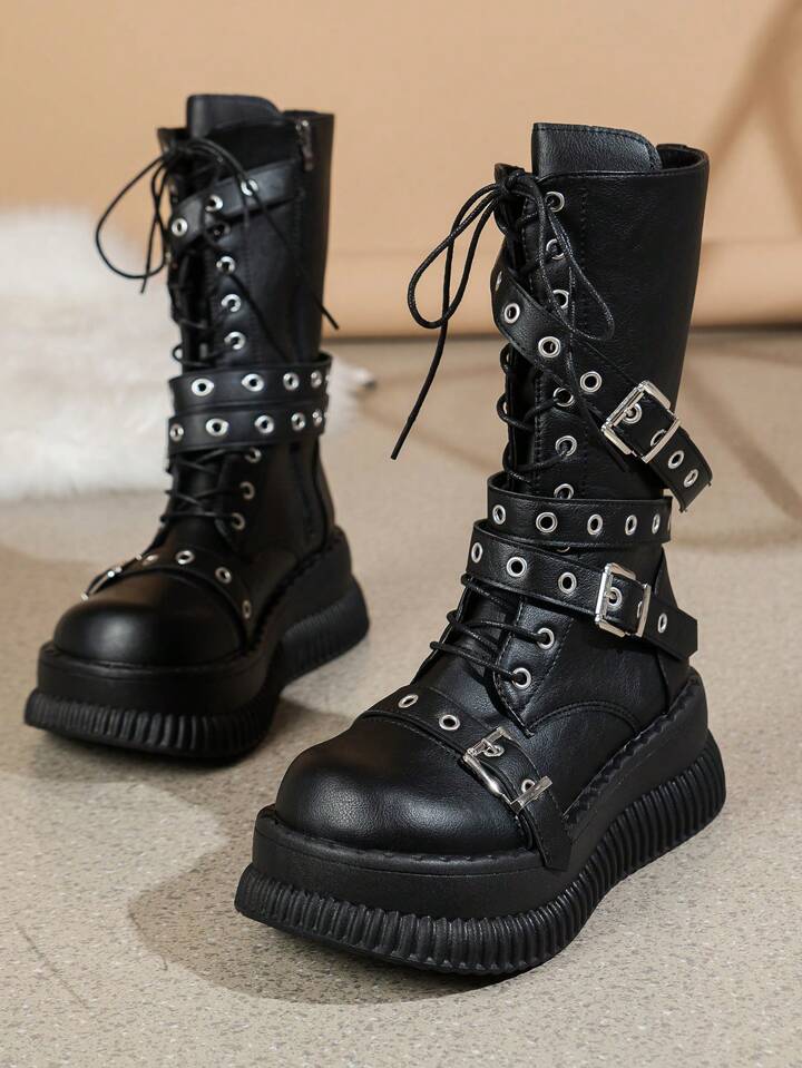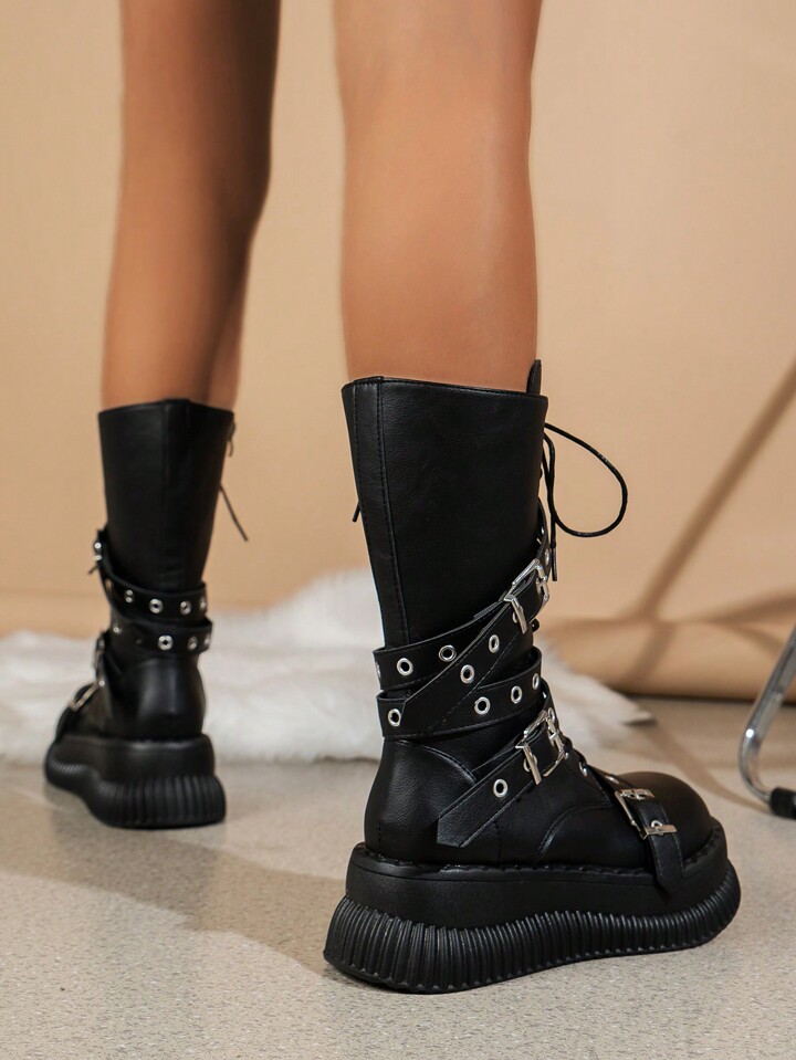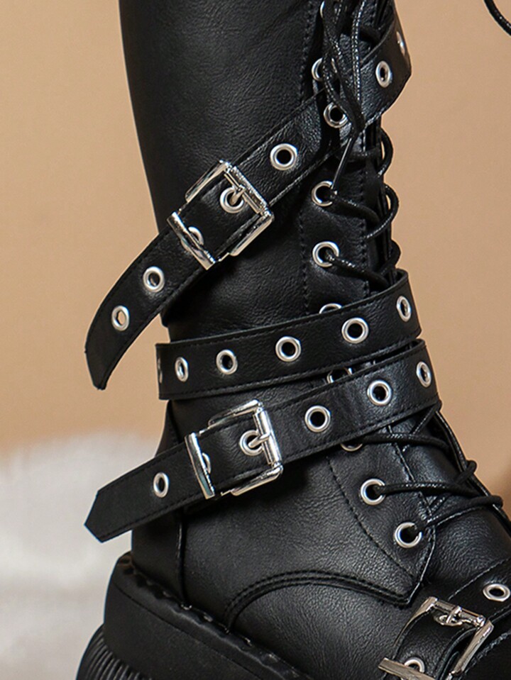 Goth Mujer Botas con diseño de hebilla mitad de la pantorrilla