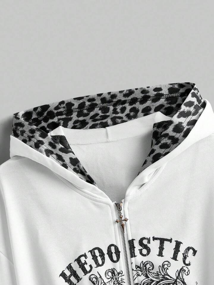 Goth Sudadera con capucha de estilo casual de calle para mujer, con estampado de calavera floral y leopardo, con cremallera de 2 en 1