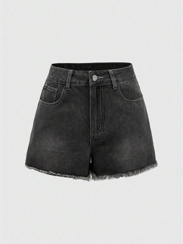 Goth Shorts vaqueros para mujer con bordado de estrella de cinco puntas y abalorios en el bolsillo trasero, para la escuela