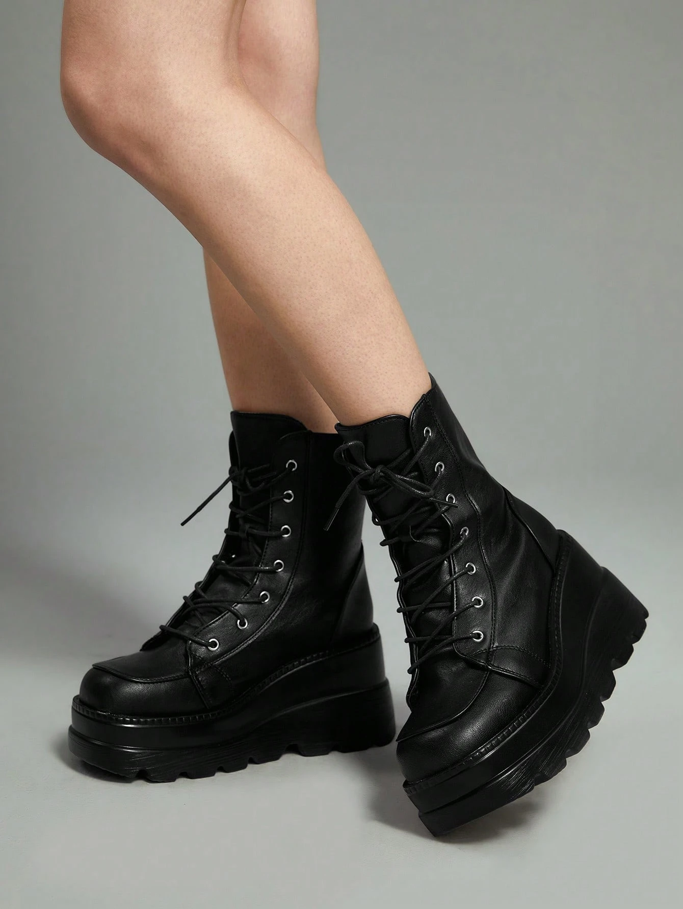 Goth Mujer unicolor con cordón delantero Botas de cuña , punk exterior Botas